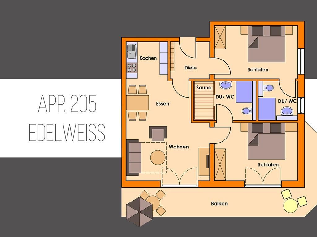 Das App. 205 (... mit Personen-Aufzug & barrierefrei) 75 qm, im modernen Landhausstil ausgestattet, mit Designböden, liegt im 2.OG mit Süd-Ost-Balkon und freiem Blick auf die Oberallgäuer Bergwelt. Wohnzimmer mit Sitzecke, Flachbild-TV, gemütliche Essecke und komplett ausgestattete Küche mit allem Komfort. 2 Schlafzimmer mit Doppelbetten, 2 x Bad mit Dusche/WC & integrierter Sauna im Appartement. Haustiere sind in dieser Wohnung nicht erlaubt.