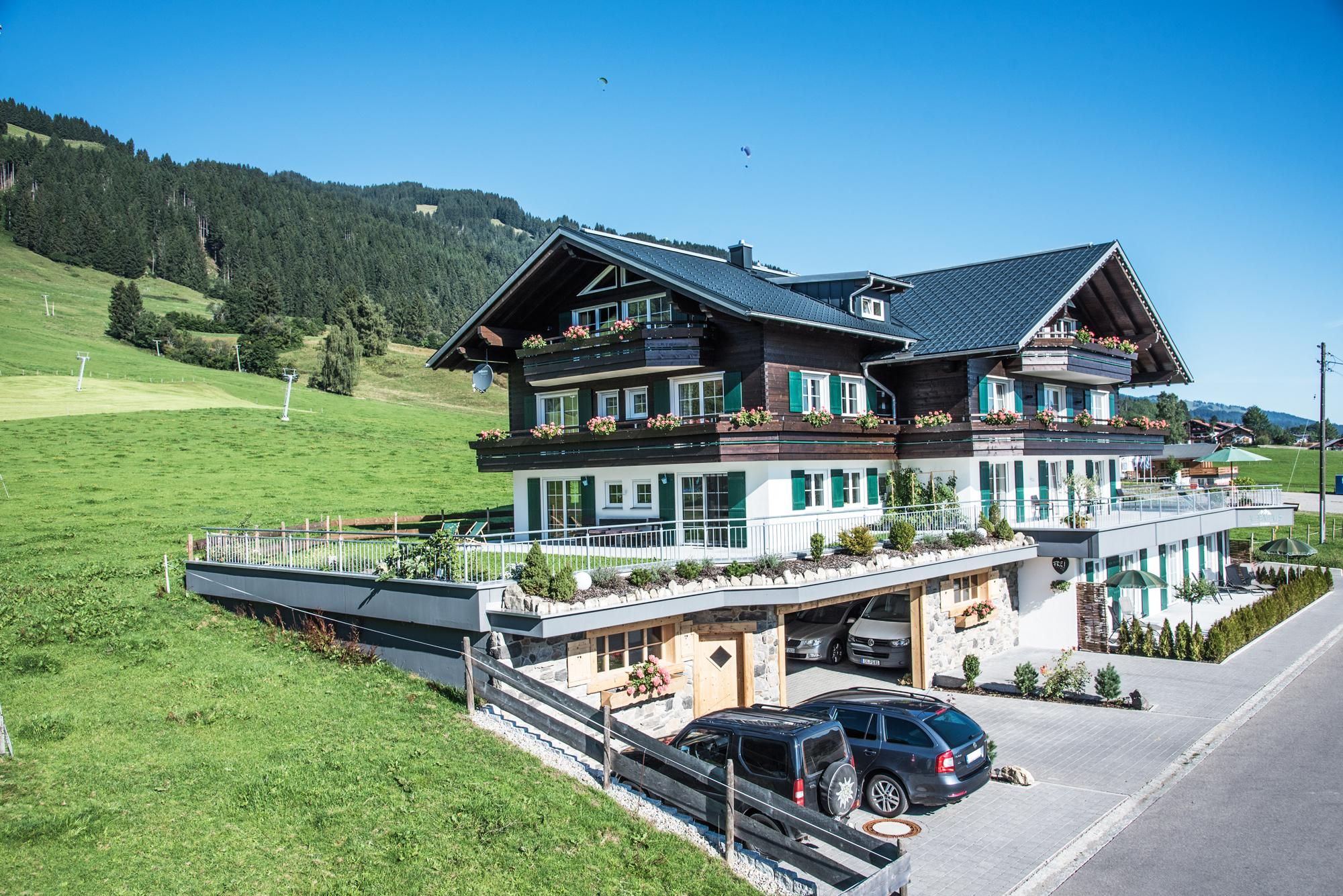 In Sonderdorf, einem urgemütlichen Ortsteil des Bergdorfs Bolsterlang, liegt unser neues Alpenhaus. Die Atmosphäre wird geprägt von wohltuender Gastlichkeit und dem herrlichen Ausblick auf Berge, Wiesen und Wälder. Alle Wohnungen sind mit kompletter Küche, Balkon oder Terrasse, WLan und Sat-TV ausgestattet, 4 davon sind mit einer Sauna im Appartement.