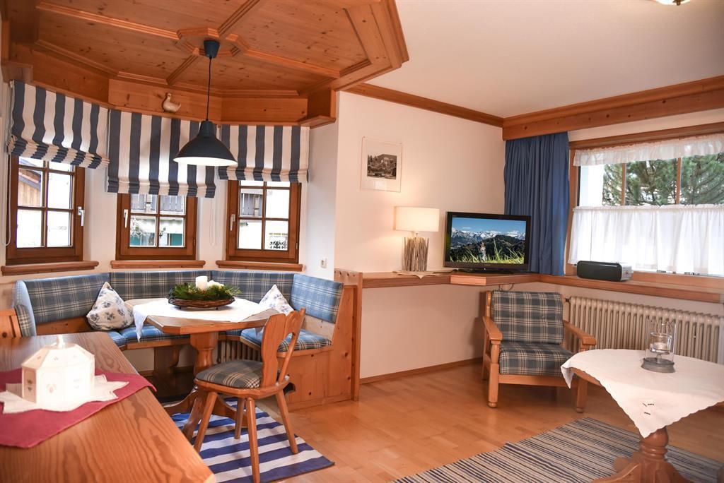 Das Appartement 101, 50 qm, ist im modernen Landhausstil ausgestattet und liegt im Erdgeschoss mit Südbalkon und freiem Blick auf die Oberallgäuer Bergwelt! Wohnzimmer mit Sitzecke, Flachbild-TV, gemütliche Essecke und komplett ausgestattete Küche mit allem Komfort. Schlafzimmer mit Doppelbett, Bad mit DU/WC. WLAN. Das Appartement kann mit 4 Personen belegt werden.