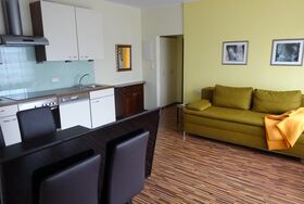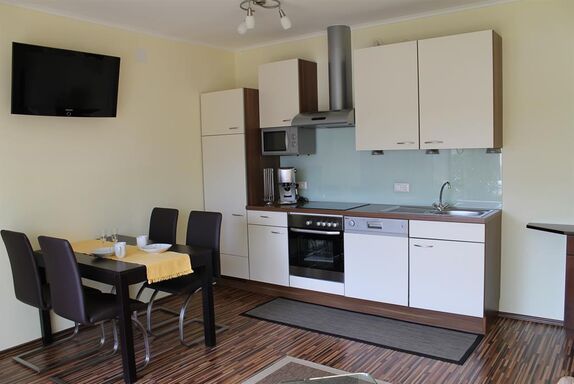 Komplett eingerichtet mit 1 Schlafraum, 1 Wohn-Schlaf-Essraum,Küchenzeile mit E-Herd ,Backrohr,Geschirrspüler, Küklschrank mit Gefrierfach,Geschirr,Filter und TABS Kaffeemaschine, Wasserkocher, Toaster, Eierkocher....SAT TV. WLAN -kostenlos: