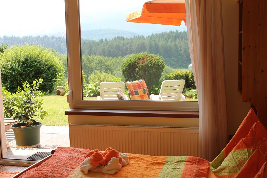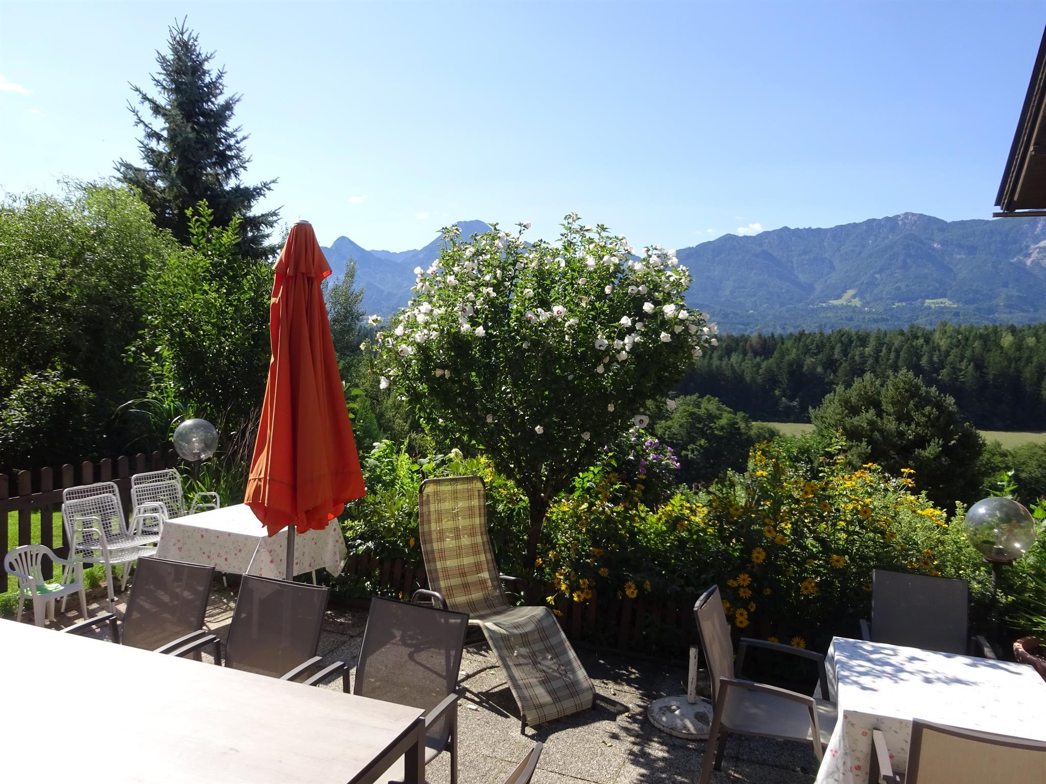 Schöne Ferienwohnung mit großer Terrasse und direktem Zugang zur Liegewiese, herrlichem Panoramablick auf die Karawankenkette.
