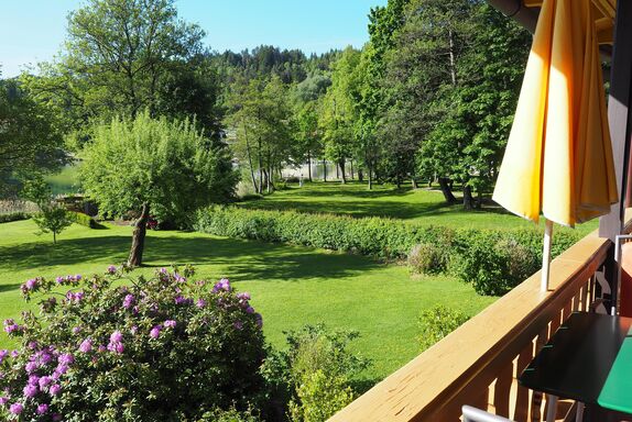 Vom Balkon unserer BergWohnung haben Sie einen traumhaften Blick über den ganzen Millstätter See und den Klingerpark.