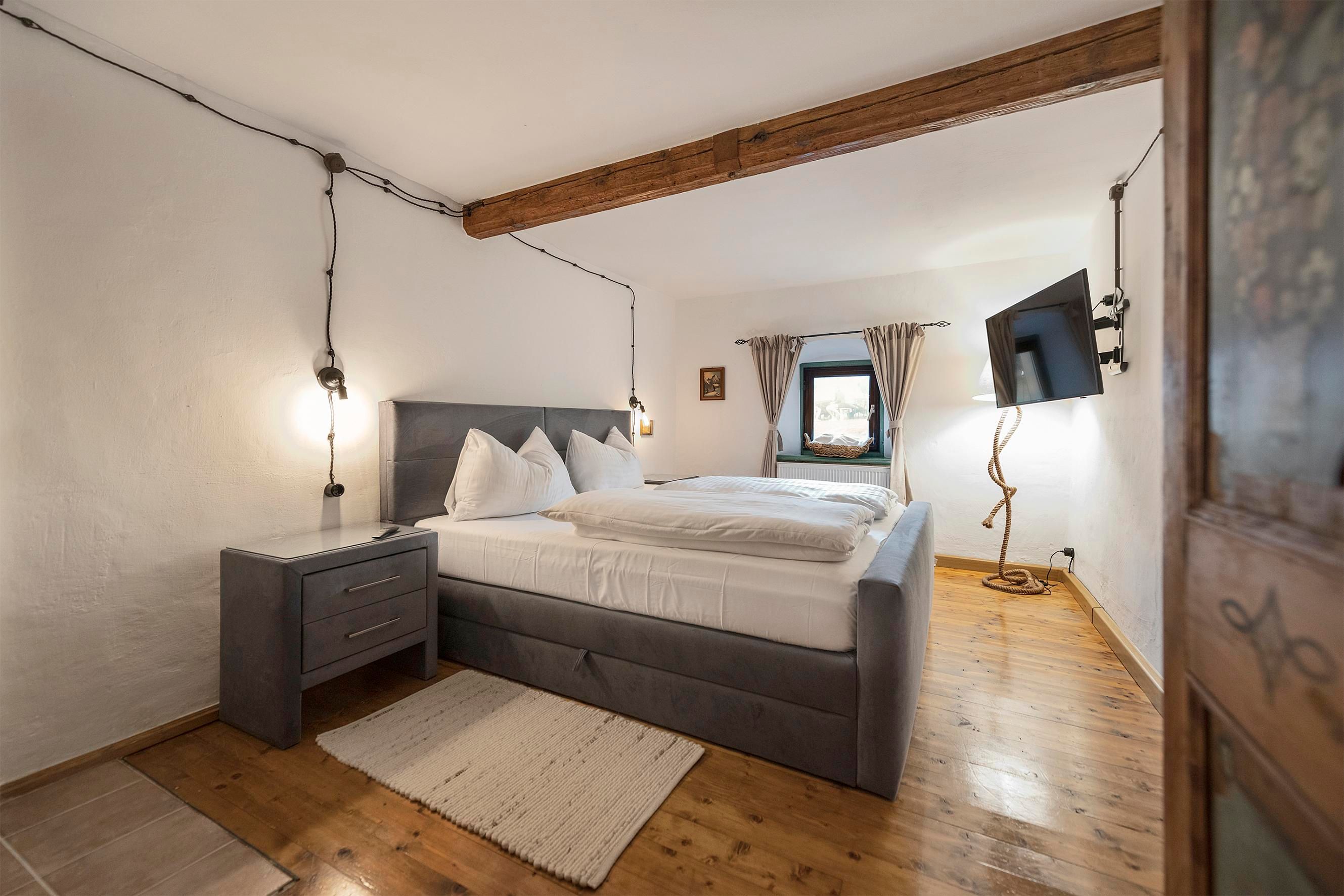 Unser charmantes Bauernhaus verfügt über 5 großzügige Doppelschlafzimmer, wovon 2 mit einer rustikalen Eckbank und einem Tisch ausgestattet sind sowie ein weiteres Schlafzimmer mit einer im Erker integrierten großen Sofa, die zum Verweilen, mit traumhaftem Blick auf den Kaiser und die Antonius Kapelle, einlädt. Alle Schlafzimmer verfügen über Boxspringbetten, Smart TV und W-Lan, hier können Sie sich in Ruhe zurückziehen (W-Lan kann auf Wunsch auch deaktiviert werden).