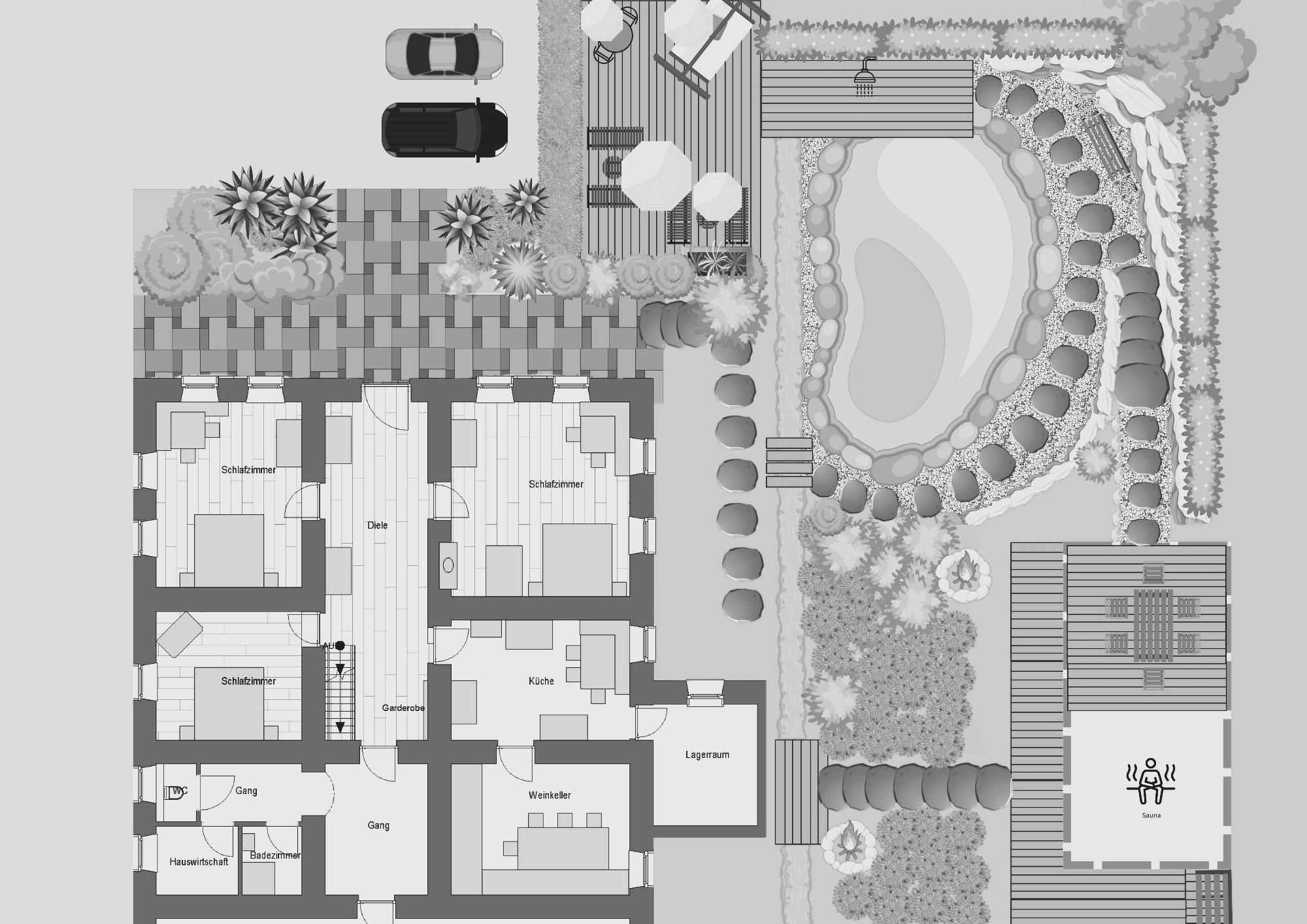 Idyllisch an einem kleinen Bächlein gelegen, kann man in diesem edlen Bauernhaus aus 1728, einen unvergesslichen Urlaub in Ebbs erleben. Im Erdgeschoss erwartet Sie eine großzügige Diele mit Garderobe und Zugang zum Sportkeller, sowie 3 Schlafzimmer und die rustikale Küche, die so gut wie möglich im ursprünglichen Zustand erhalten und restauriert wurde. An die alte Küche ist ein Weinkeller mit großem Altholztisch und Gewölbedecken angegliedert. Des Weiteren befindet sich auf dieser Ebene noch 1 Bad und eine Gästetoilette. Im OG finden Sie die modern ausgestattete Küche mit 4 Ceran-Kochfeldern, Backofen, Kühlschrank, Spül- und Kaffeemaschine, sowie die nötigen Küchenutensilien. Über den großzügigen Flur, gelangen Sie zu den beiden weiteren Schlafzimmern und der Stube. Die Stube ist mit einem großen Sofa und einem Esstisch mit Eckbank ausgestattet. In diesem Stockwerk befinden sich noch ein Bad & WC, sowie ein Schmink- & Waschtisch in beiden Zimmern. Ab Juni 2021: Sauna + Naturpool
