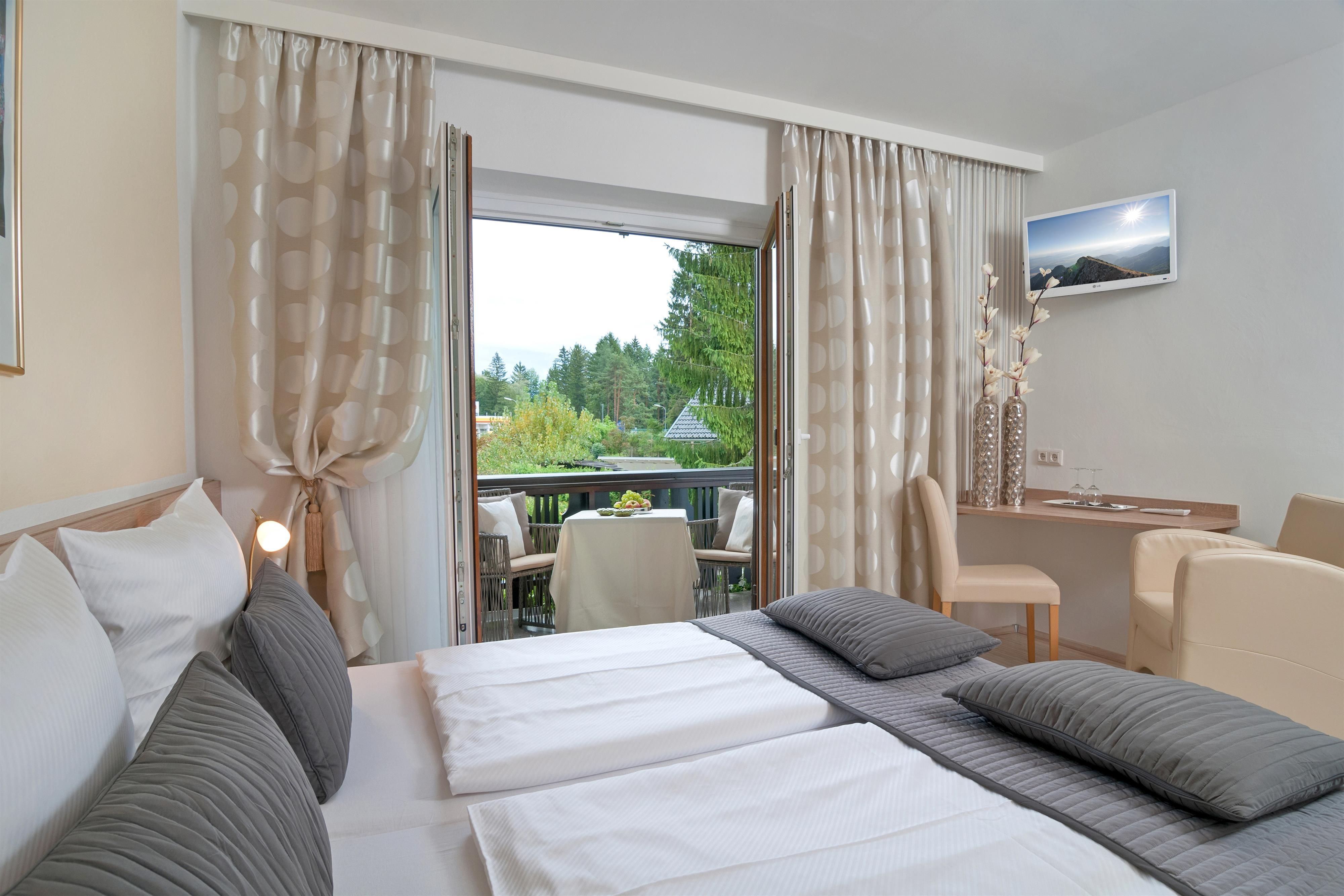 Die modernen Zimmer verfügen alle über eigenen Balkon mit Blick auf den ruhigen Garten.