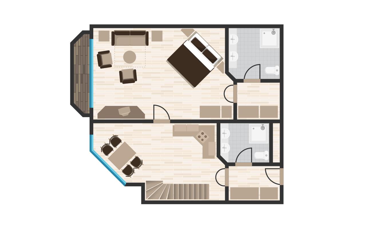 Unser Apartment Rubin mit ca. 70 qm. verfügt mit zwei Etagen über Elternschlafzimmer, Kinderzimmer, L-Küche mit großen Kühlschrank, 4er Ceranfeld, Mikro/Backofenkombination, Voll ausgestattet, Sitzecke, 2 Badezimmer mit Dusche, Doppelwaschbecken, WC, große Flachbildfernseher, WIFI Hotspot, Wintergarten und Balkon mit Süd-West Ausrichtung.
