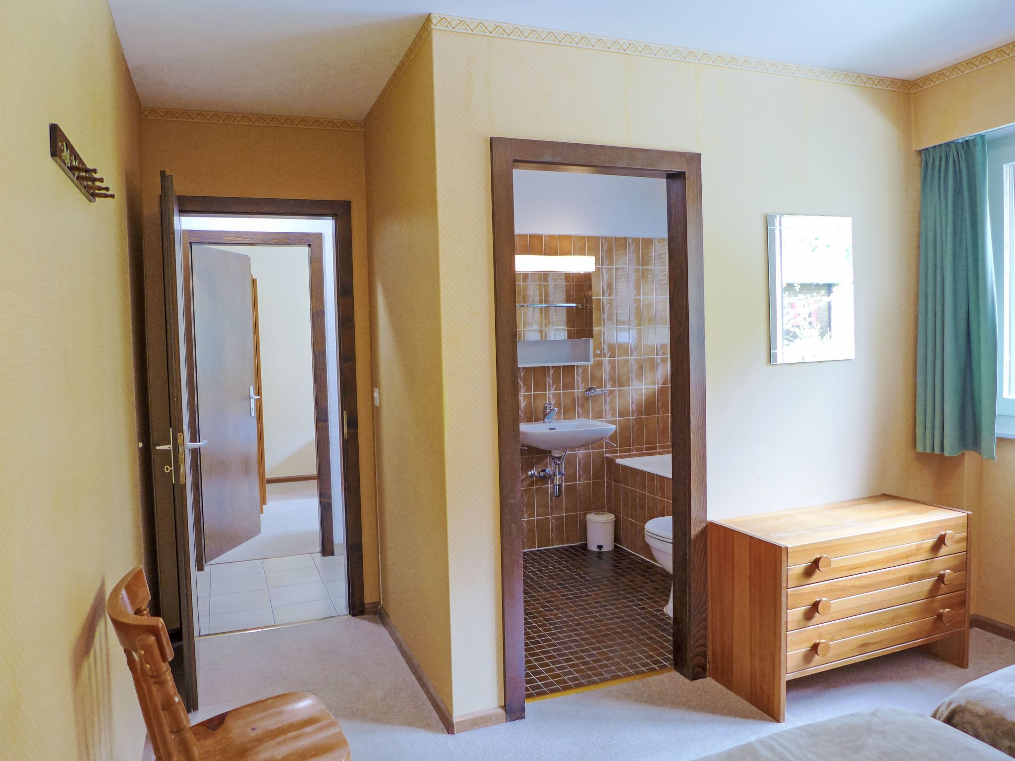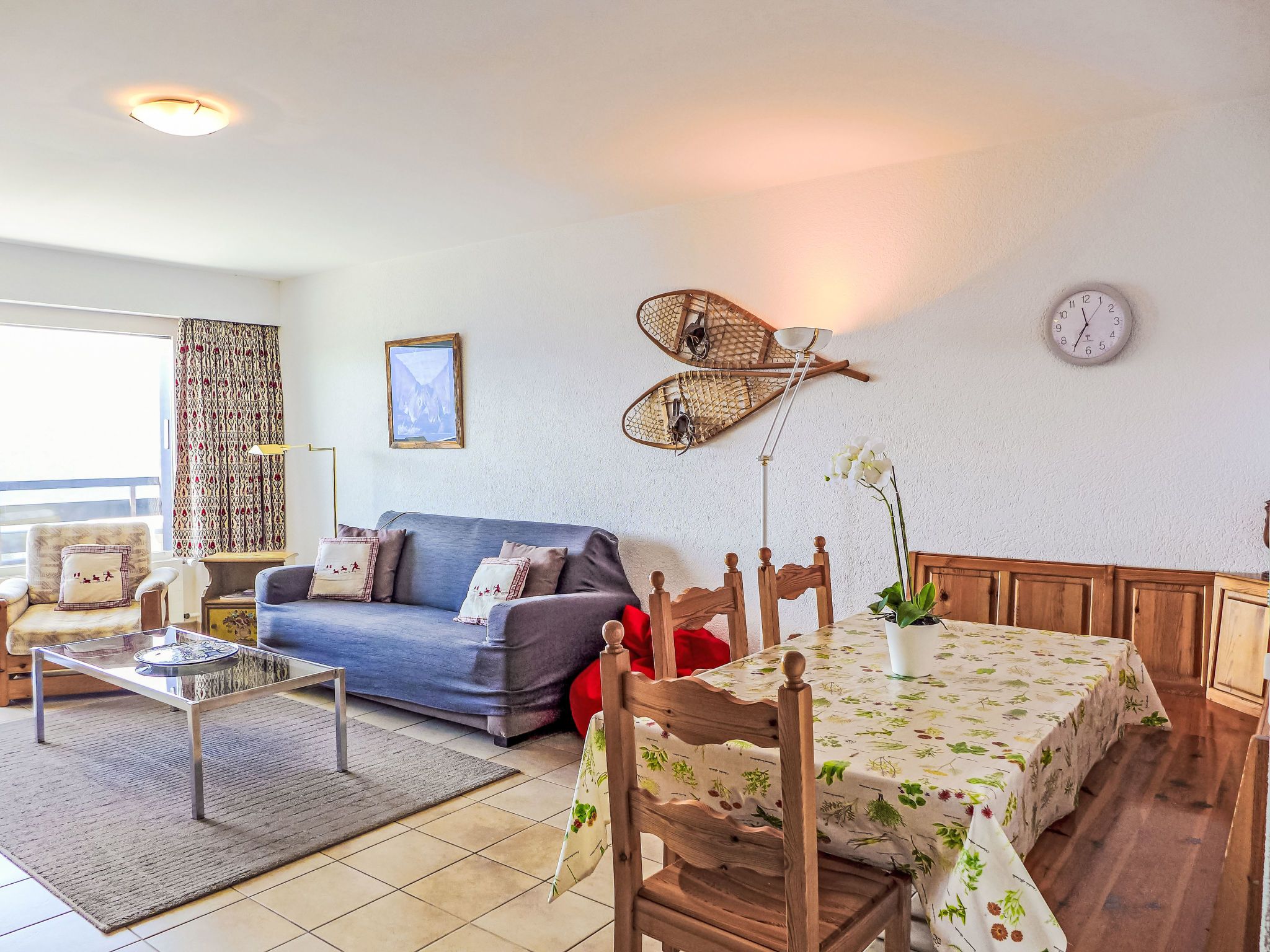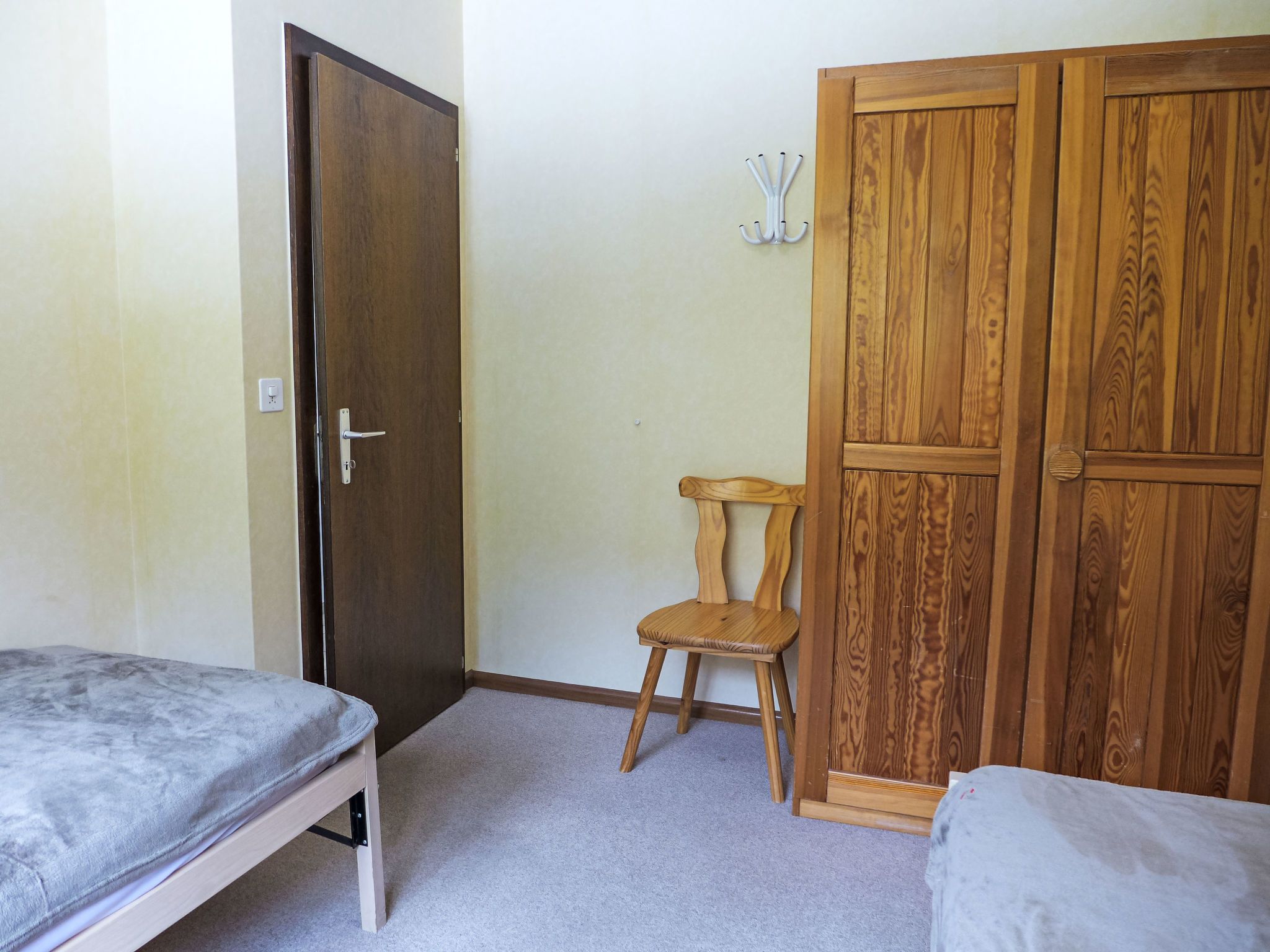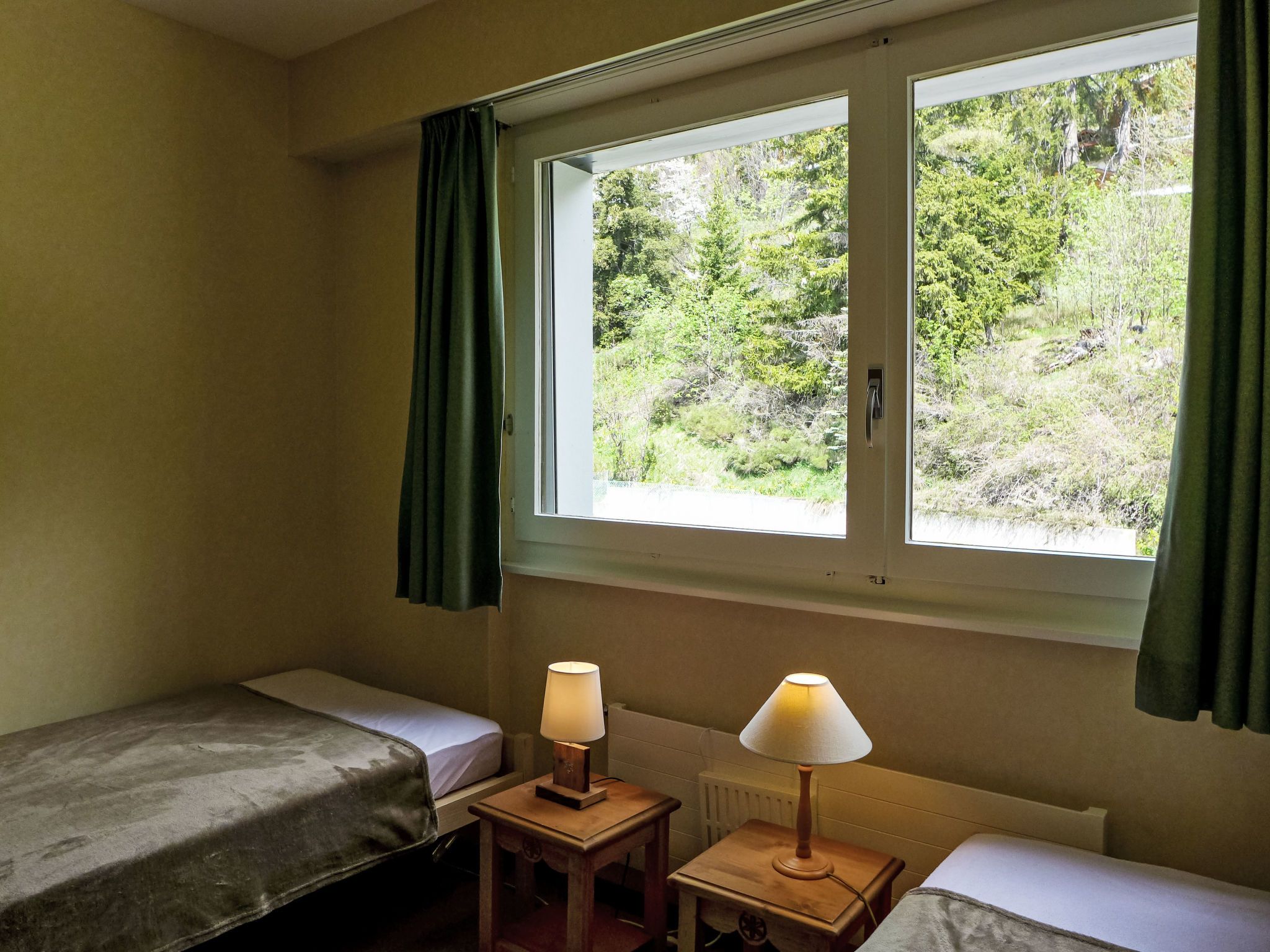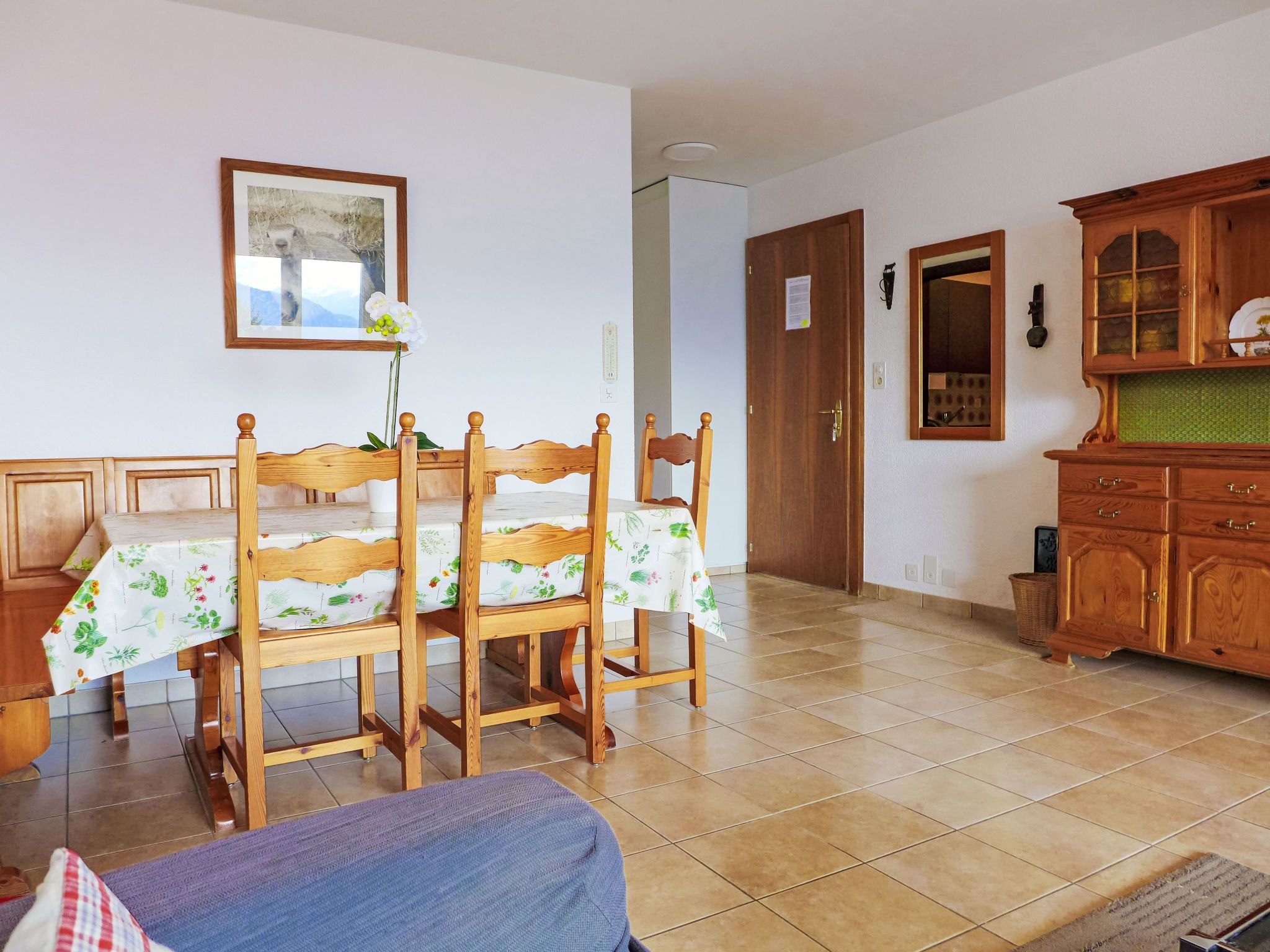 Merises 20, 3-Zimmer-Wohnung 72 m2 im 3. Stock, Südlage. Gemütlich eingerichtet: Wohn-/Esszimmer mit 1 Diwanbett, Esstisch und Kabel-TV. 1 Zimmer mit 2 Betten (90 cm, Länge 190 cm). 1 Zimmer mit 2 Betten (90 cm, Länge 190 cm). Küche (3 Kochplatten, Backofen, elektrische Kaffeemaschine). Bad/Bidet/WC, Dusche/WC. Balkon 7 m2, Südlage. Balkonmöbel. Sehr schöne Sicht auf die Berge und die Landschaft. Zur Verfügung: Internet (Wireless LAN).