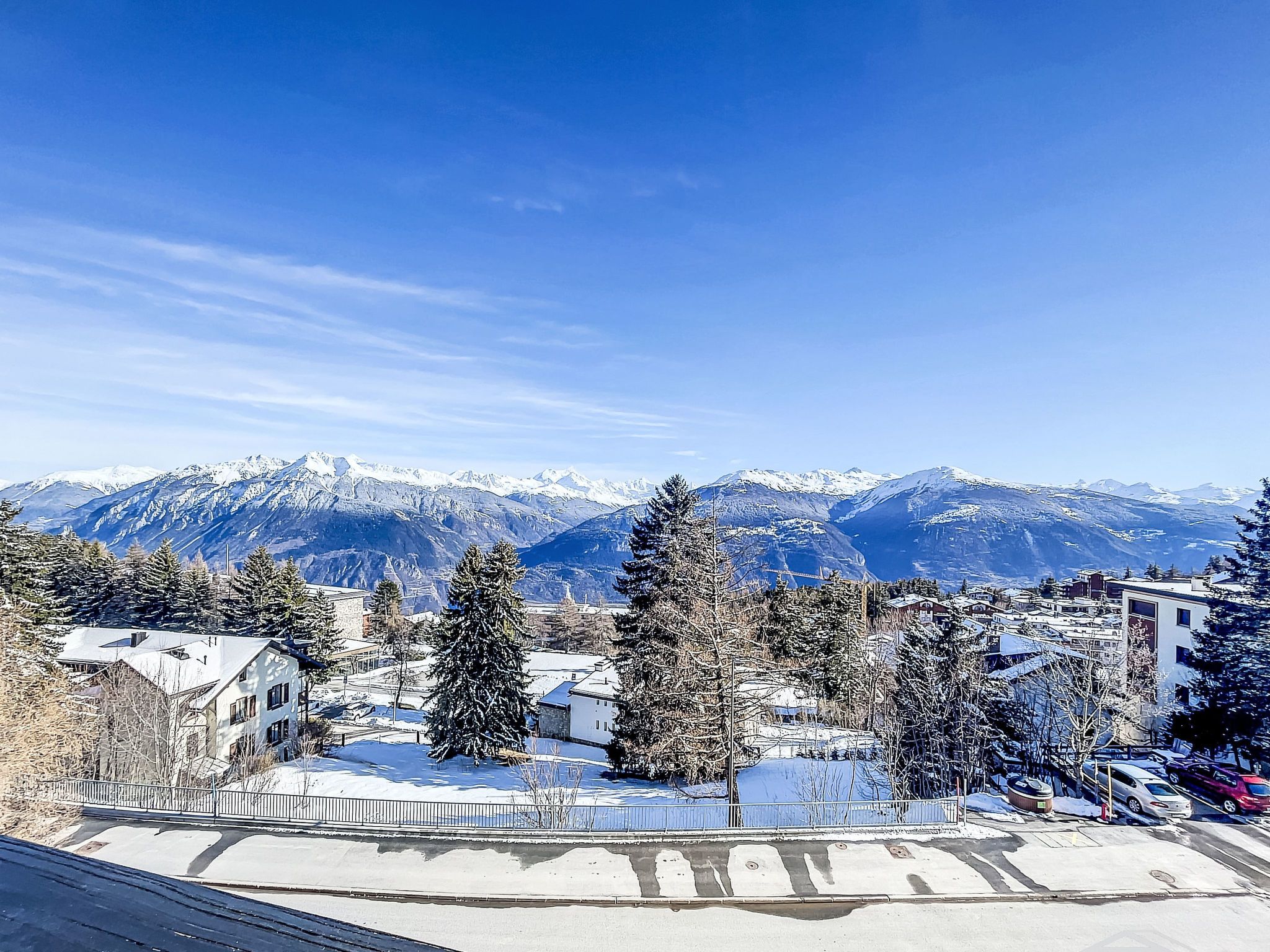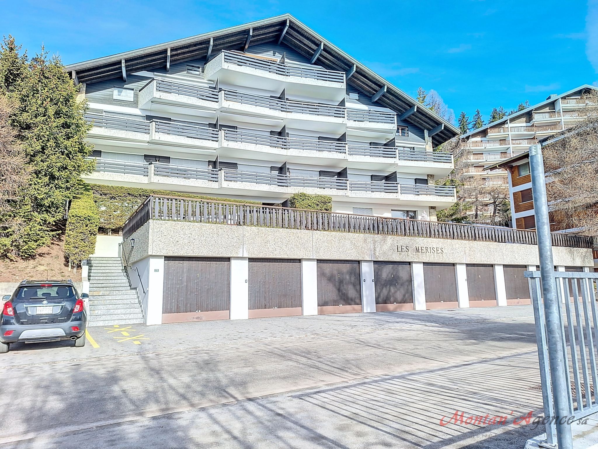 Residenz Merises, auf 4 Stockwerken, Baujahr 1980. Im Ortsteil Arolles, 200 m vom Zentrum von Montana, ruhige Lage, verkehrsberuhigte Zone, 200 m vom Waldrand. In der Anlage: Fahrstuhl, Zentralheizung, Waschmaschine (zur Mitbenutzung, extra), Trockenraum. Treppenweg (30 Stufen) bis zum Haus. Parkplatz (beschränkte Anzahl) beim Haus. Einkaufsgeschäft, Lebensmittelgeschäft, Supermarkt, Restaurant, Bar, Bäckerei, Café, Bushaltestelle Ycoor 200 m. Golfplatz (18 Loch) 2 km, Skisportanlagen 300 m, Eisfeld 200 m. Bitte beachten: Weitere Unterkünfte sind buchbar.