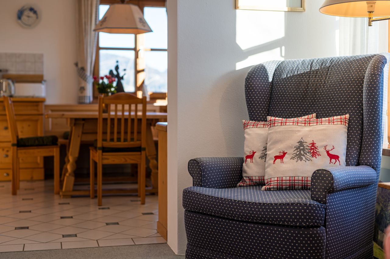 Auf großzügigen 95m² bietet die Ferienwohnung Suite Mathilda mit zwei behaglichen Schlafzimmern, einem einladenden Wohnzimmer, einer voll ausgestatteten Küche und einer weitläufigen Terrasse mit Garten ein gemütliches Ambiente für bis zu 4 Personen. Hier können Sie den Tag nach Abenteuern in den Bergen oder auf den Loipen gemeinsam ausklingen lassen.