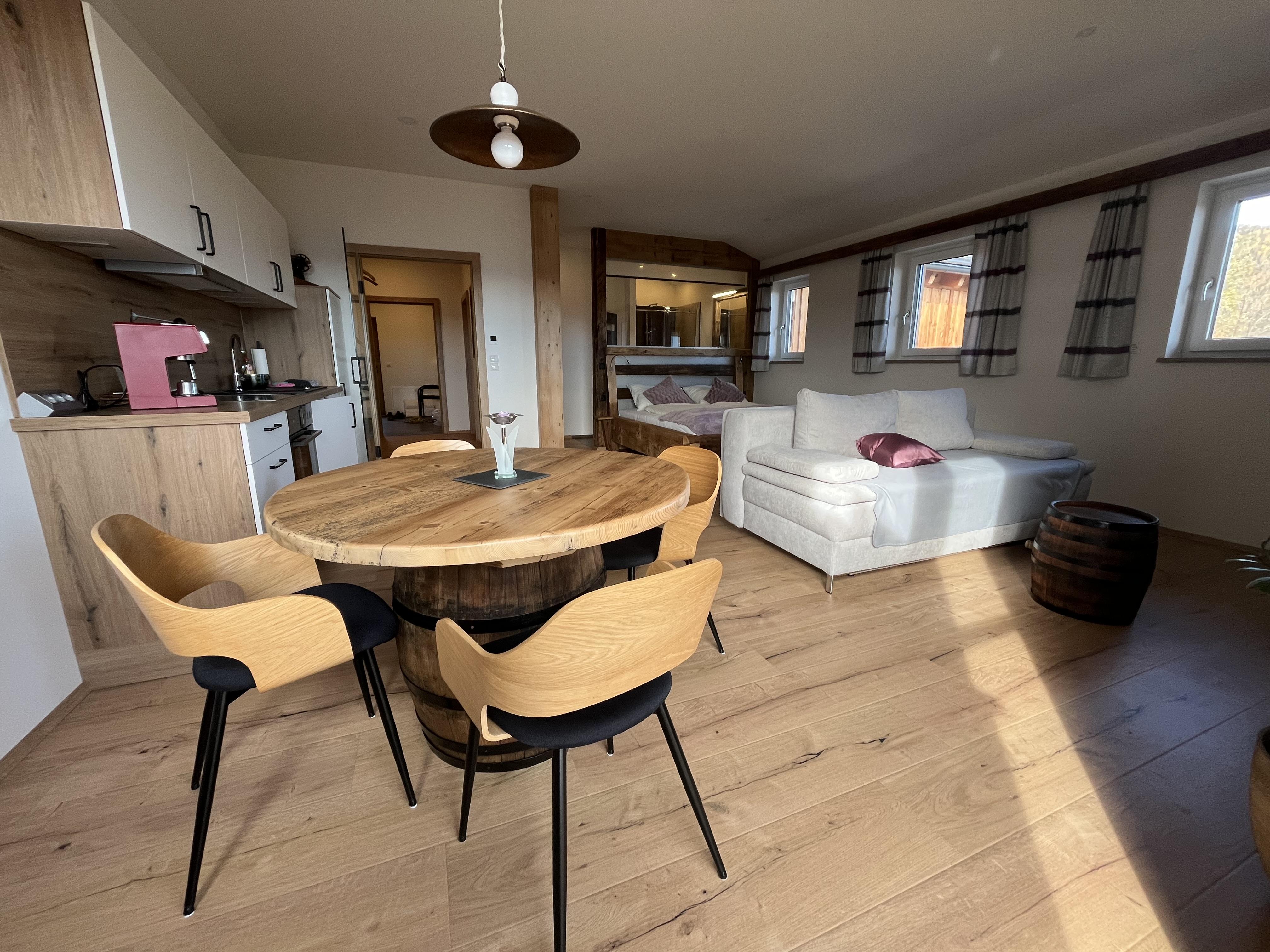 In der gesamten Wohnung finden Sie Hochwertige und Handgefertigte Tischlermöbel, die für eine gemütliche Atmosphäre sorgen.