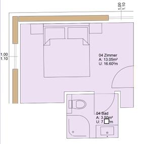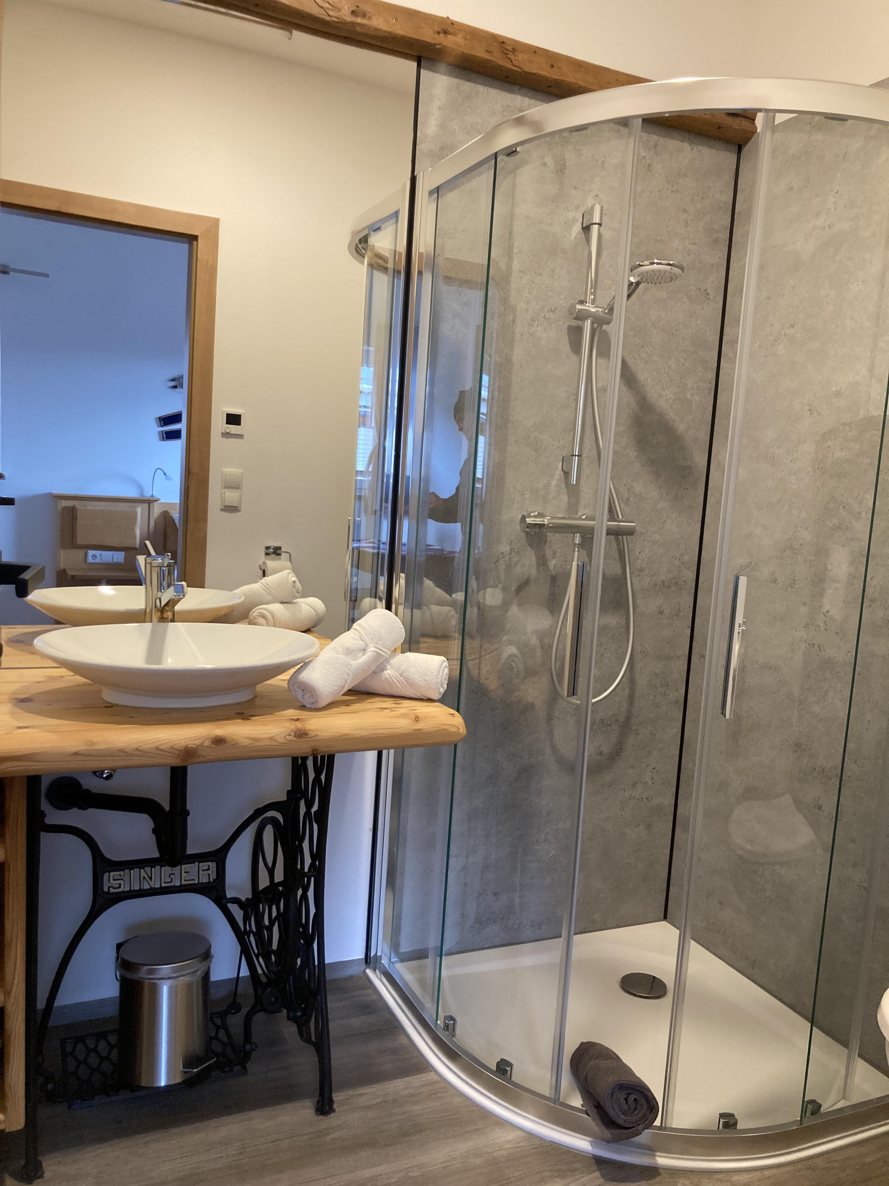 Für zusätzlichen Kompfort verfügt das Zusatzzimmer über ein eigenes Badezimmer mit WC und Dusche, Handtüchern, Handtuchtrockner und Föhn.