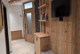 Appartement mit einem Wohn– Schlafzimmer mit Boxspringbett, Kochgelegenheit (kein Backrohr) und TV. Ein Badezimmer mit Dusche und Bidet (getrennt durch eine Schiebetür). Ein separates WC (getrennt mit Schiebetür). Fensterblick in Richtung Straße. Größe ca. 20 m²
