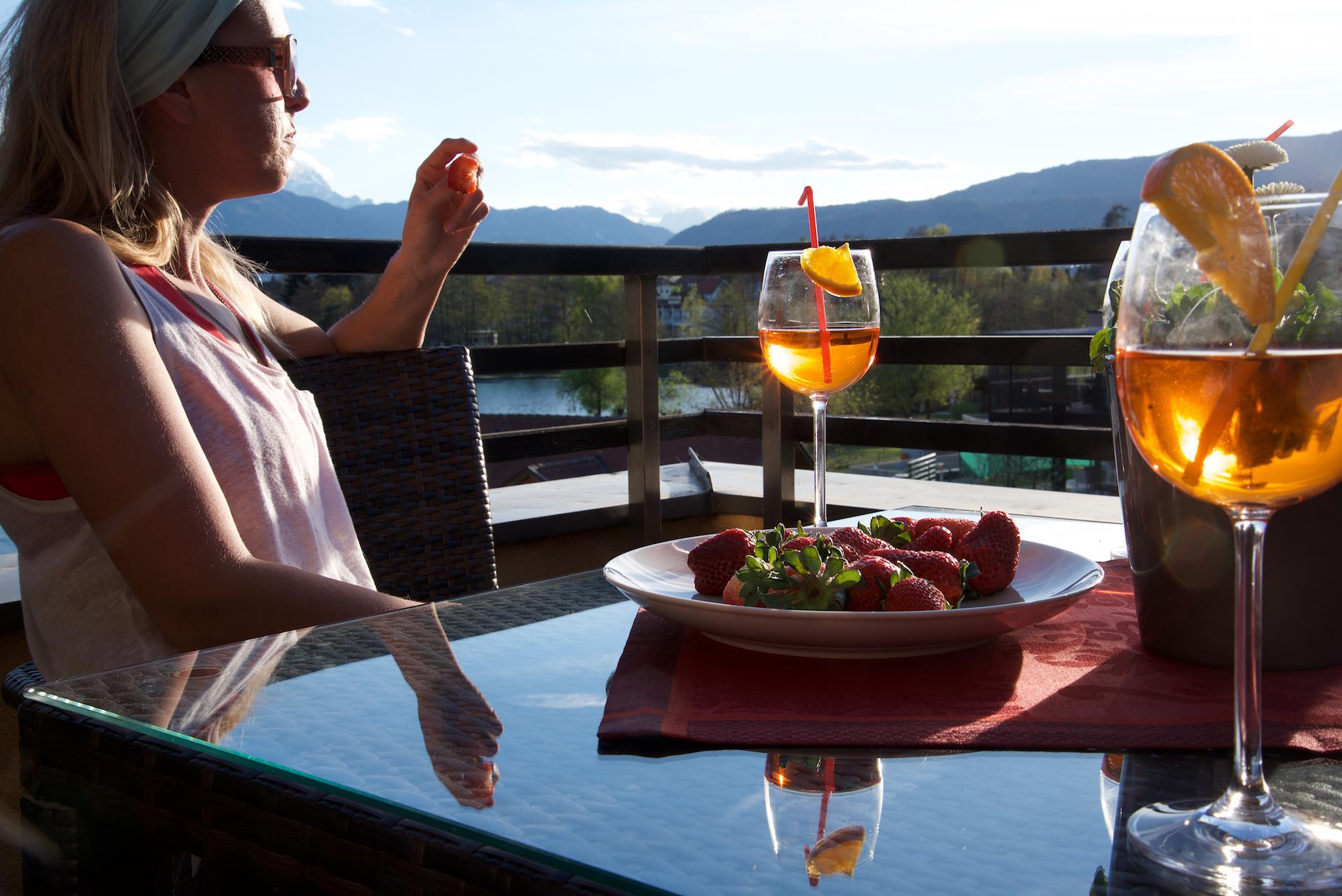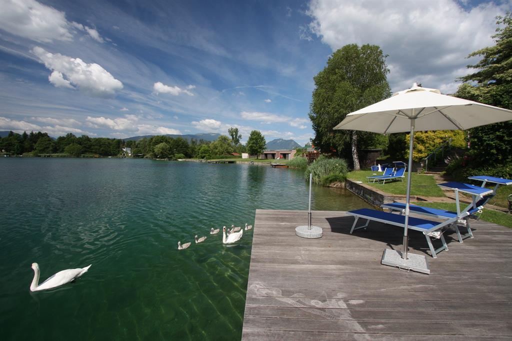 Unsere Badestrand hat einen atemberaubenden Blick auf Kärntens Bergwelt. Vielleicht läd Sie dieser Blick auf die Karawanken und die Julischen Alpen zu einer Bergwanderung ein. Anschließend erlauben bequeme Liegen mit Sonnenschirmen rasches Abschalten. Sie werden von den atemberaubenden Seestimmungen begeistert sein. Professionelle physiotherapeutische Beratung in unserem neuen Yogaraum, sowie ein Tretboot und ein Kinderspielplatz stehen für Sie bereit.
