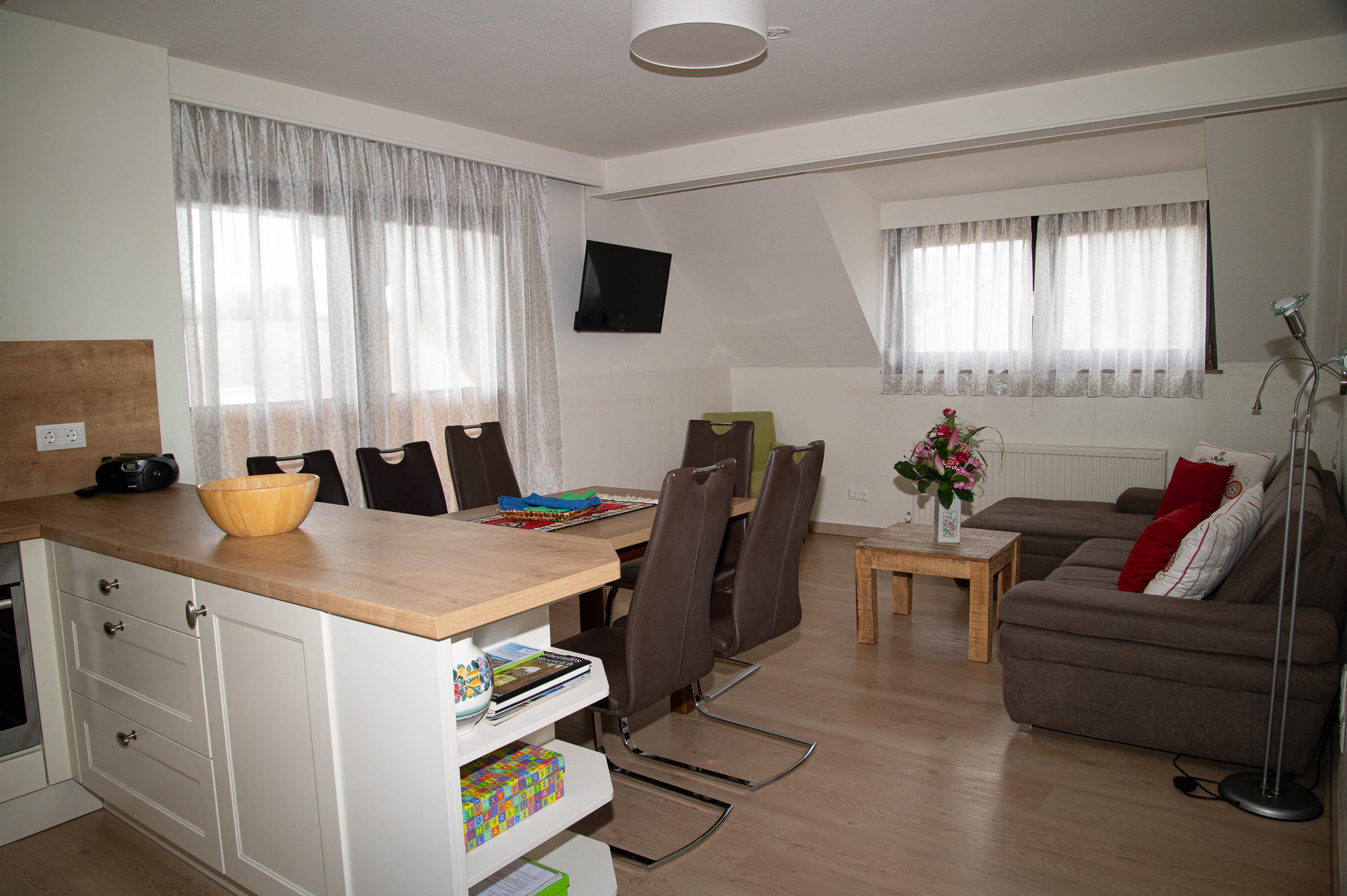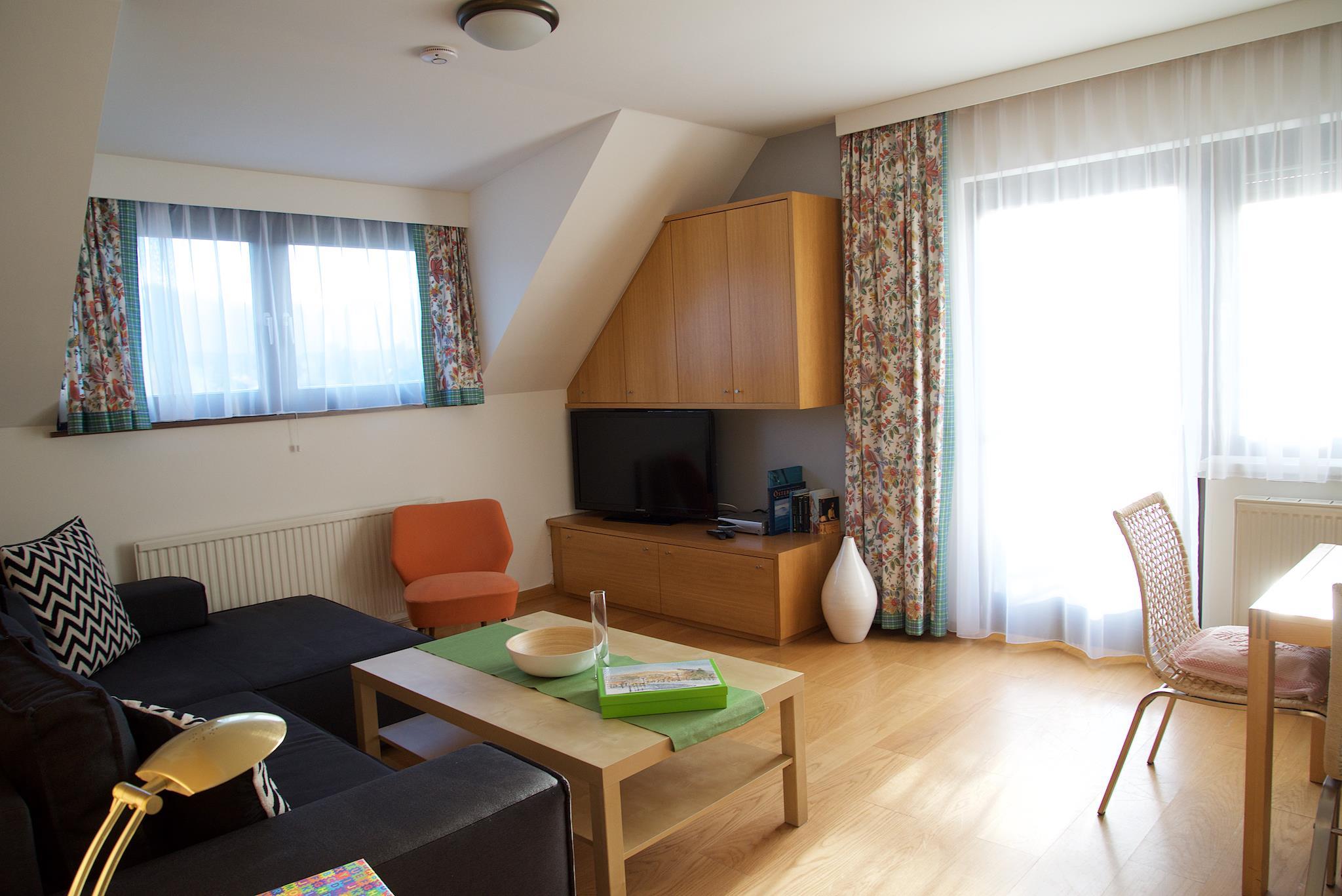 Eine großzügige Wohnküche Einen Balkon mit Seeblick Ein Schlafzimmer Eine Schlafcouch im Wohnzimmer Eine Dusche mit WC Ein Fernseher Die Preise beinhalten die freie Nutzung von Grillplatz, Privatstrand, Liegestuhl, Sonnenschirm und Tretboot, Wireless Internetl und die Betriebskosten.