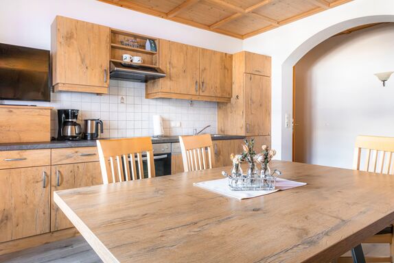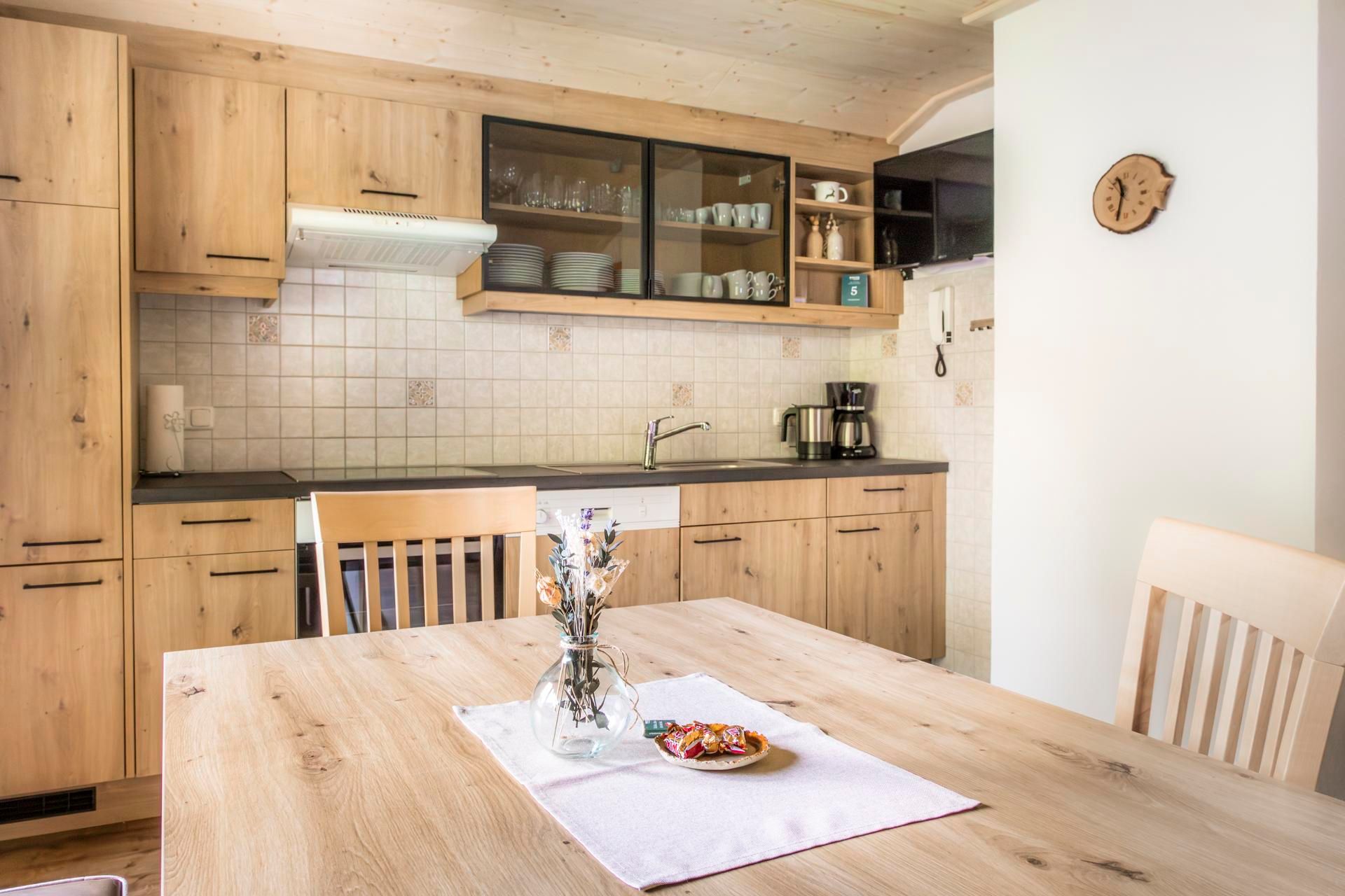 Die Ferienwohnung wurde neu errichtet und ist sehr geräumig und komfortabel ausgestattet, mit einer großen Wohnküche mit SAT-TV, Telefon und Balkon, 3 getrennten Schlafzimmern, Bad und WC getrennt. Bei der Ausstattung wurde besonders auf gemütliches und behagliches Wohnen mit natürlichen Materialien Wert gelegt (Vollholzmögel, Parkettboden, Holzdecken ...).
