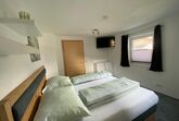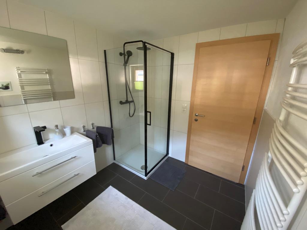 Unser neu renoviertes Apartment verfügt im Erdgeschoß über zwei großzügige Schlafzimmer sowie ein gemütliches Bad mit Regendusche, Waschtisch und WC.