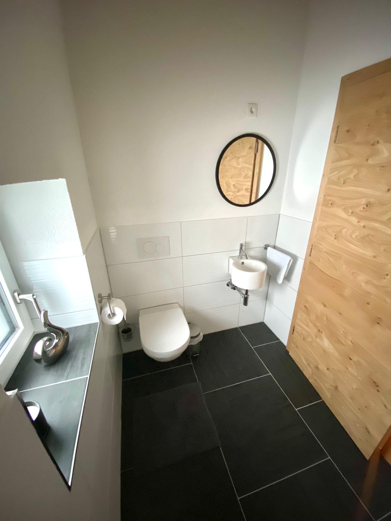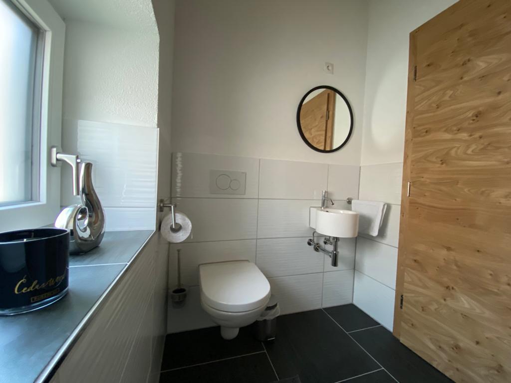 Ebenso gibt es im Obergeschoß ein abgetrenntes WC mit Handwaschbecken. Ein kleiner Balkon steht ebenfalls zur Verfügung.