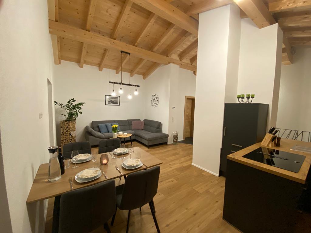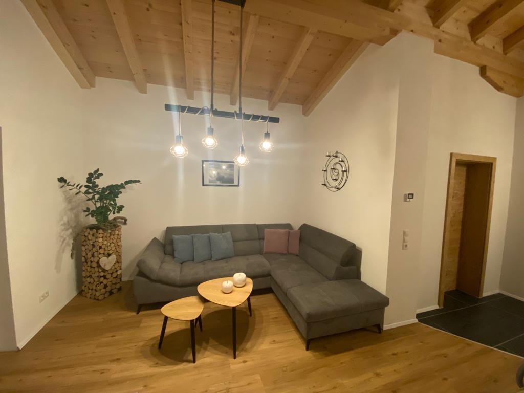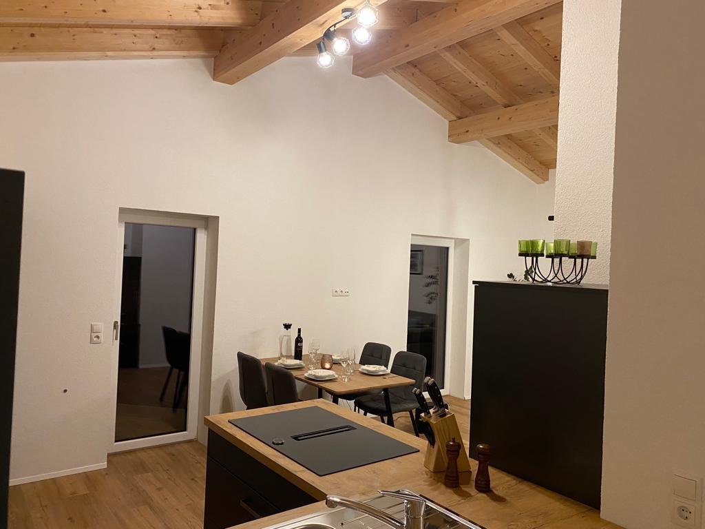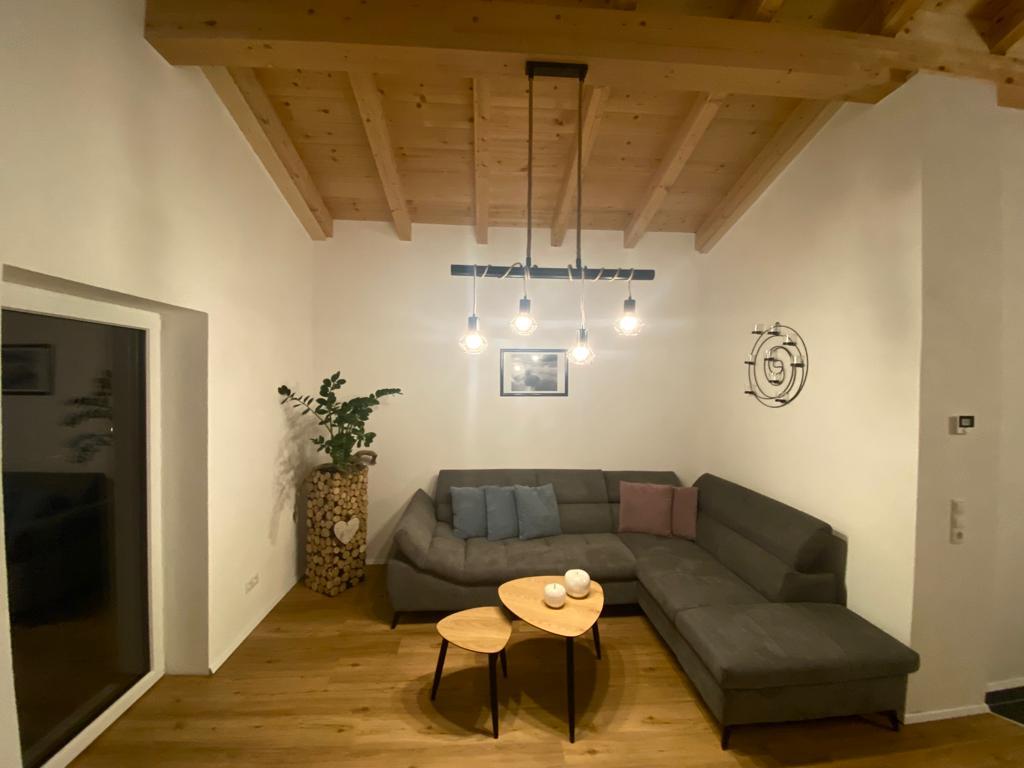 Über eine Treppe gelangen Sie in das Obergeschoß, das sofort durch seinen ca. 40m² großen offenen Wohnbereich und dem Sichtdachstuhl Wohlfühlen garantiert. Neben einer Küche befindet sich hier noch Platz, um am Esstisch zu sitzen, auf der großzügigen Wohnlandschaft zu entspannen oder aber auch an der Bar den Abend ausklingen zu lassen.