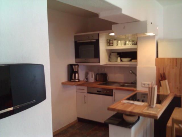 Küche ist komplett ausgestatet mit Elektroherd, Ceranfeld, Kühlschrank und Geschirrspüler, Kaffeemaschine und Mikrowelle.