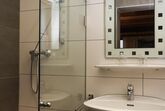 • 1 Schlafzimmer mit ebenerdiger Dusche und Waschbecken