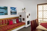 • Kachelofen mit anschließendem Sofa, Flat-TV
