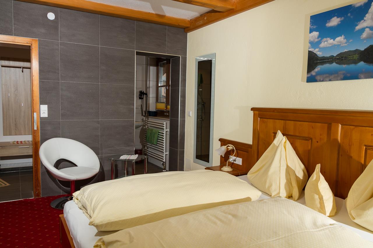 Sie können wählen zwischen Doppelzimmern oder Ferienwohnungen mit einem herrlichen Blick auf die Berge und den See.