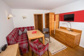 Appartement mit einem Schlafzimmer mit Doppelbett. Im Wohnbereich kann das Ausziehsofa für weitere 2 Personen als Schlafmöglichkeit genutzt werden.