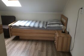 Erdgeschoss: Küche mit Sitzecke, Sitzterrasse im Freien mit Schaukel für die Kinder. Obergeschoss: Ein Zweibettzimmer mit Couch (ausziehbar) und gemütlichem, kleinen Balkon. Ein Kinderzimmer ( zwei Betten - 90 cm breit ) , Bad mit grosser Dusche und WC.