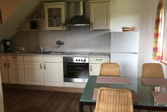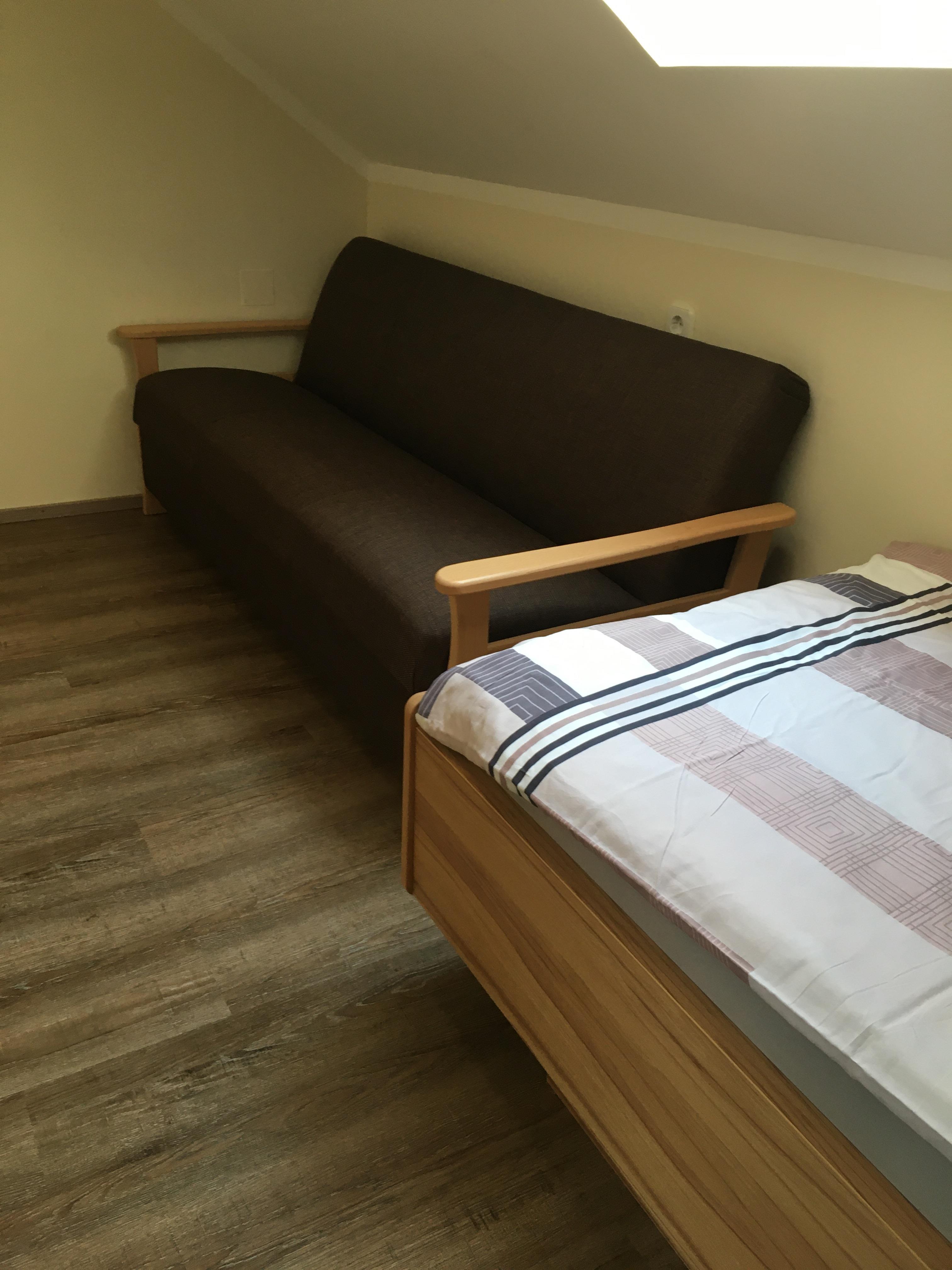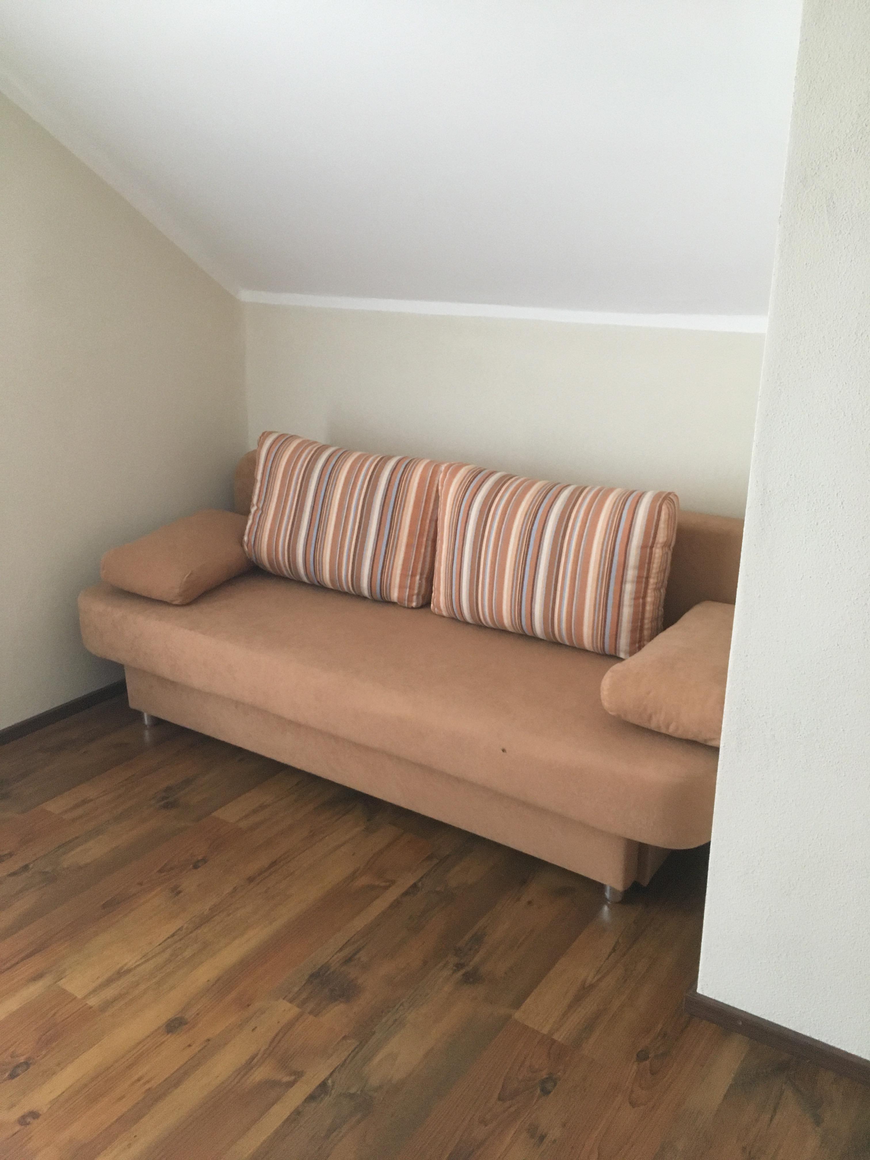 Ausstattung: Küche mi E-Herd u. Backrohr, grosser Kühlschrank mit Gefrierfach, TV mit SAT Anschluss,Geschirr, Handtücher, Tisch- und Bettwäsche. Erdgeschoss: Küche mit Sitzecke, Sitzterrasse im Freien mit Schaukel für die Kinder. Obergeschoss: Ein Zweibettzimmer mit Couch (ausziehbar) und gemütlichem, kleinen Balkon. Ein Kinderzimmer ( zwei Betten - 140cm und 90 cm breit ) , Bad mit grosser Dusche und WC. Der Preis versteht sich exklusive Endreinigung und exklusive Kurtaxe.