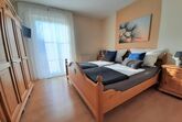Separates Schlafzimmer mit Doppelbett und dreitürigem Schrank. Auch hier befindet sich ein kleiner Fernseher. Ebenfalls vorhanden: eine kleine Abstellmöglichkeit wo Sie Bügeleisen, Bügelbrett, Staubsauger und Putzutensilien sowie einen Wäschekorb finden (Waschmaschine und Trockner sind zur gemeinsamen Verwendung im Haus vorhanden)