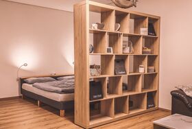 Unsere frisch renovierte Ferienwohnung mit 46m² bietet für 1-3 Personen Platz. Der gemütliche Wohn- und Schlafbereich mit Schlafsofa und Flachbild-TV lädt zum Verweilen ein.