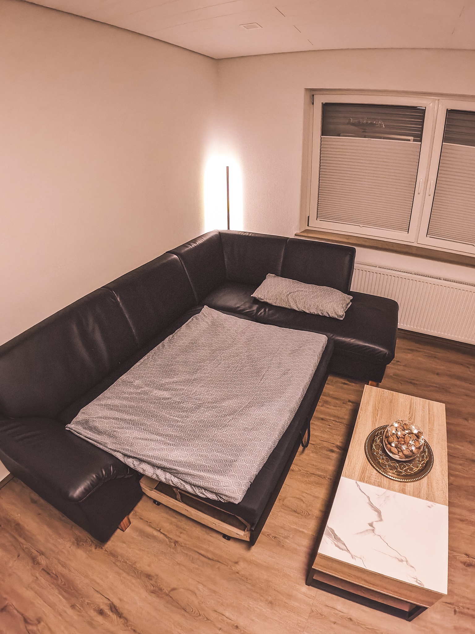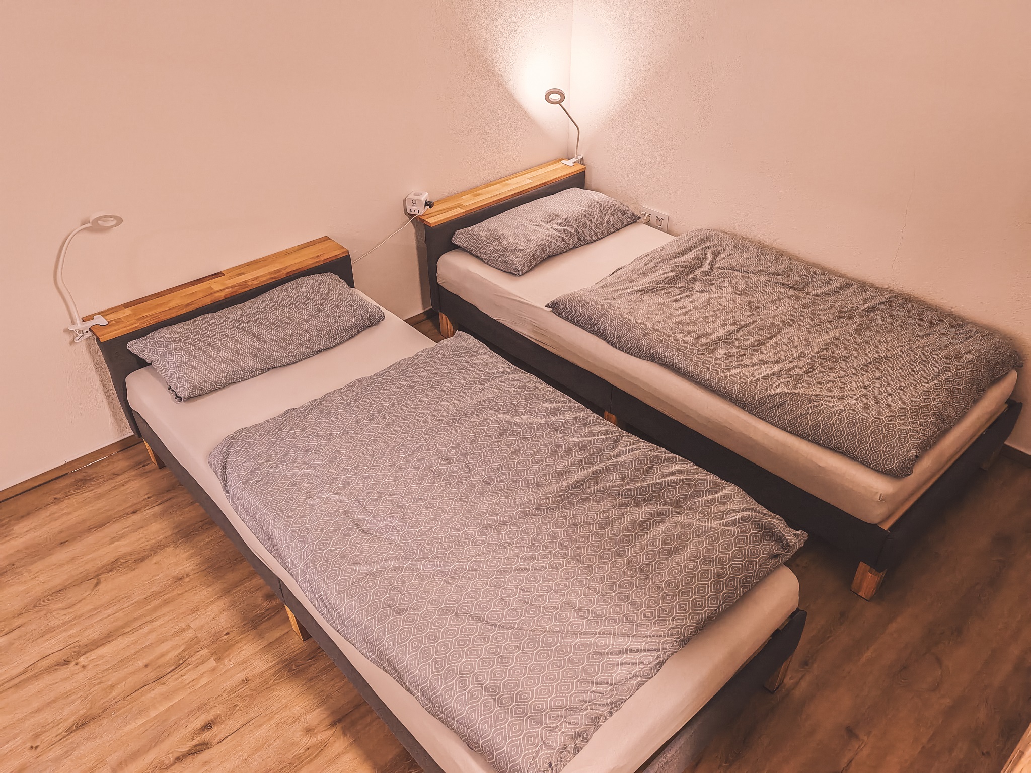 Im Schlafbereich stehen 2 Betten zur Verfügung, die als Doppelbett, oder auch als zwei einzelne Betten genutzt werden können. Sollte eine dritte Person mit anreisen, wird das Sofa schnell zu einer Schlafgelegenheit für die 3. Person.