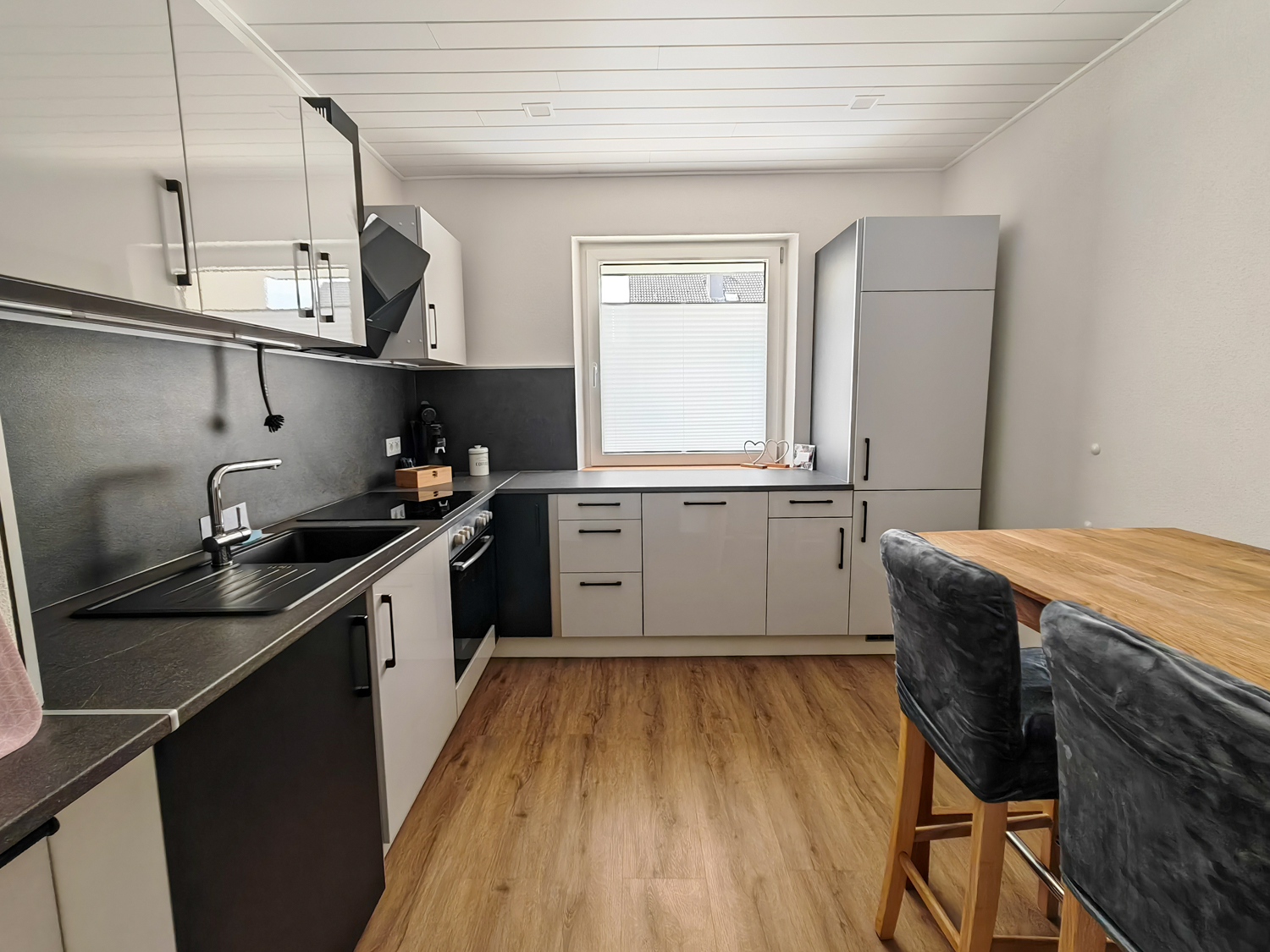 Die komplett ausgestattete Küche mit Geschirrspüler, Kühlschrank inkl. Gefrierfach, Herd, Backofen, Mikrowelle, Wasserkocher, Eierkocher, Toaster und Kaffeepadmaschine lässt keine Wünsche offen. Geschirr und weitere Kochutensilien gehören ebenfalls zur Ausstattung.
