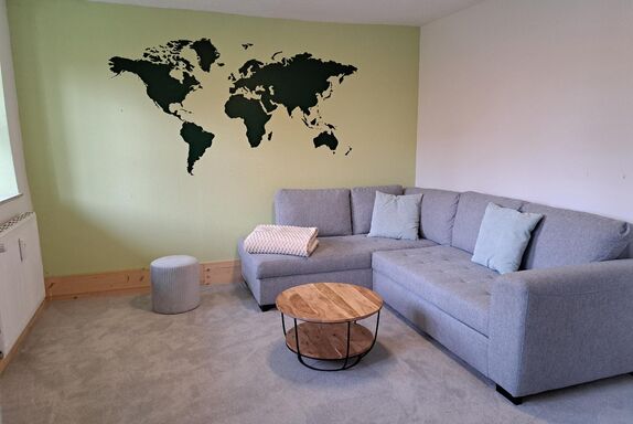 Unsere schöne 4-Zimmer-Ferienwohnung befindet sich im Erdgeschoss des Hauses Gerda. Sie ist für bis zu 6 Erwachsene nutzbar. Zu beachten sind die niedrigen Decken, welche der Wohnung Gemütlichkeit verleihen, ohne drückend und beengt zur wirken. (- Niedrigester Punkt: Decke in der Dusche ca. 1,95 m - ).