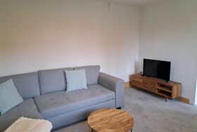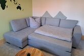 Es befindet sich ein Doppelbett (1,80 m) im großzügig geschnittenen Schlafzimmer 1 und zwei 90er Betten im Schlafzimmer 2, welche zusammengeschoben sind. Das Wohnzimmer verfügt über eine ausziehbare Couch, welche dann eine Liegefläche von ca.138 cm hat. Der vierte Raum der Wohnung kann sowohl von den Kindern als Spielzimmer, als Rückzugsort, als weiterer Stauraum für beispielsweise Kleidung und Gepäck oder für eine weitere Person als Schlafraum verwendet werden. Die darin stehende Couch kann ebenfalls schnell und einfach als Schlafcouch umfunktioniert werden und hat dann eine Liegefläche von 120 cm.