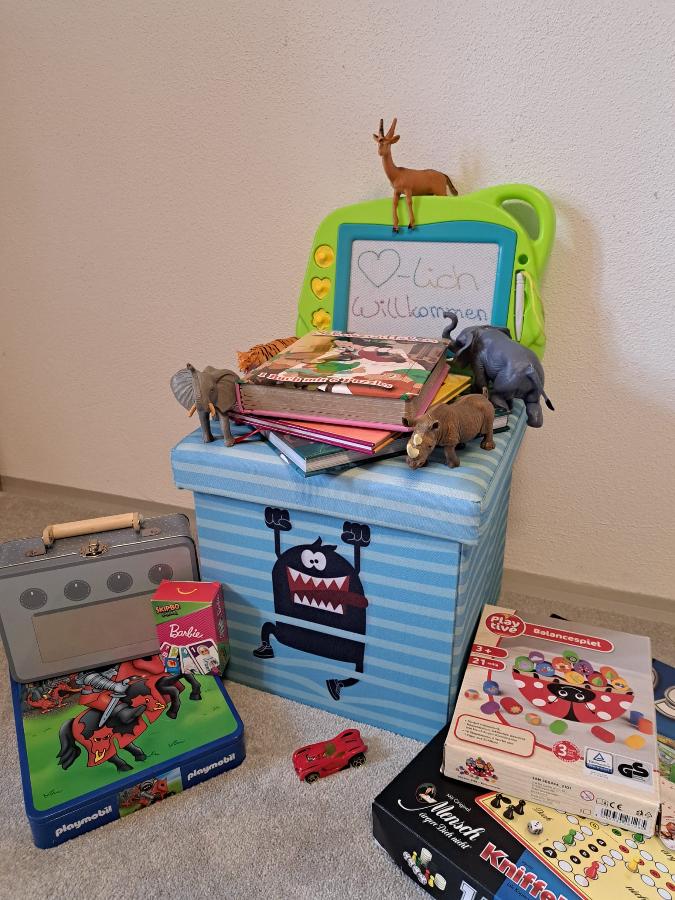 Die Wohnung ist kinderfreundlich eingerichtet; vorhanden sind: Hochstuhl, Baby-Reisebett, Tritthocker, Steckdosenschutz der unteren Steckdosen (in allen Räumen), Spiele.