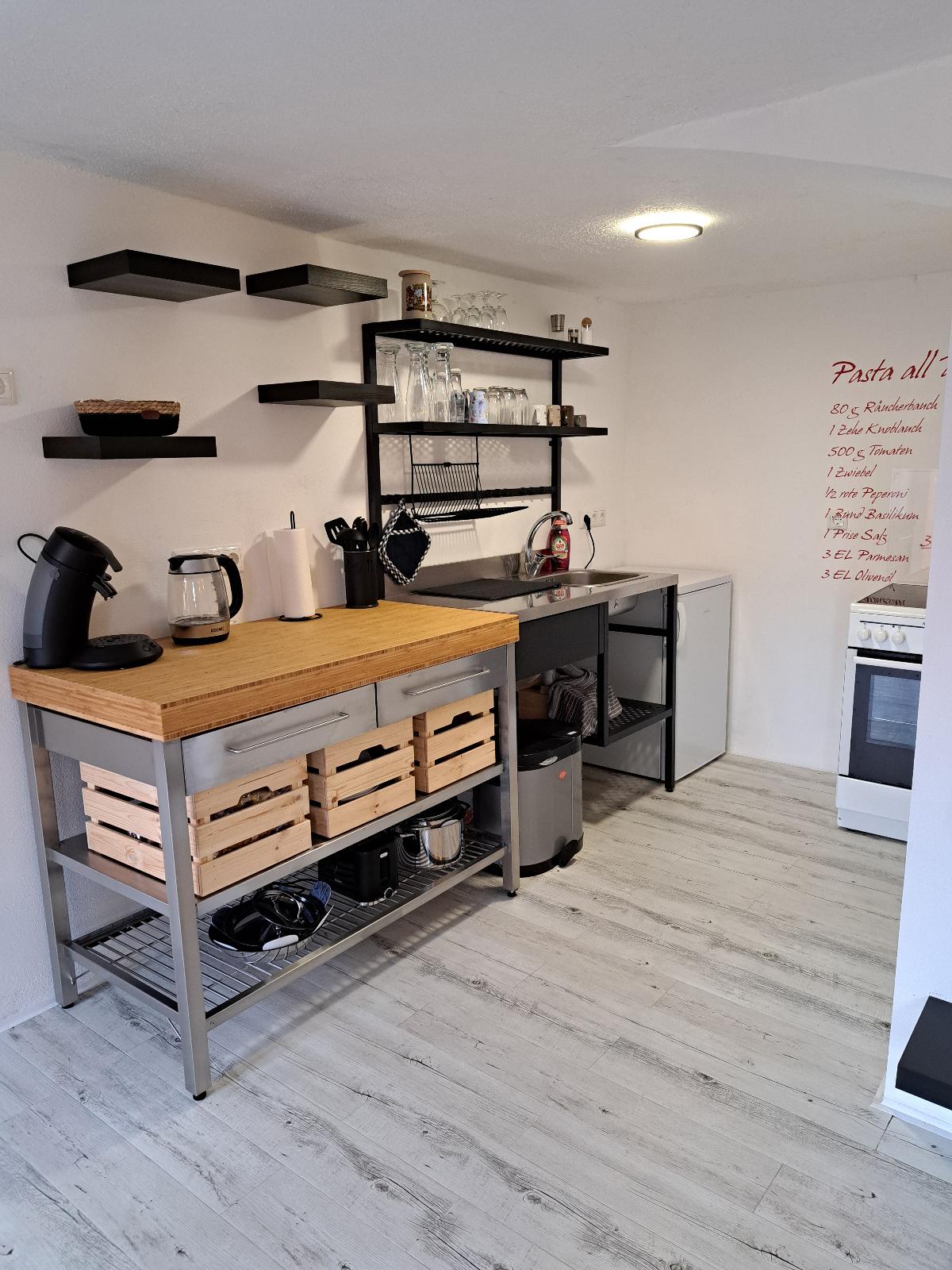 Die Ferienwohnung können Sie sich wie folgt vorstellen: Vom Essbereich aus kommt man direkt zu der kleinen Terrasse und zu dem gemeinschaftlich nutzbaren Garten. Hier kann auch gerne gegrillt werden, da die Wohnung über einen eigenen Grill verfügt. Die gut ausgestattete Küche (mit einem Kühlschrank inkl. Gefrierfach, Backofen, Toaster, Senseo Kaffeemaschine, Geschirr, Besteck und vieles mehr) lädt zum kochen ein.
