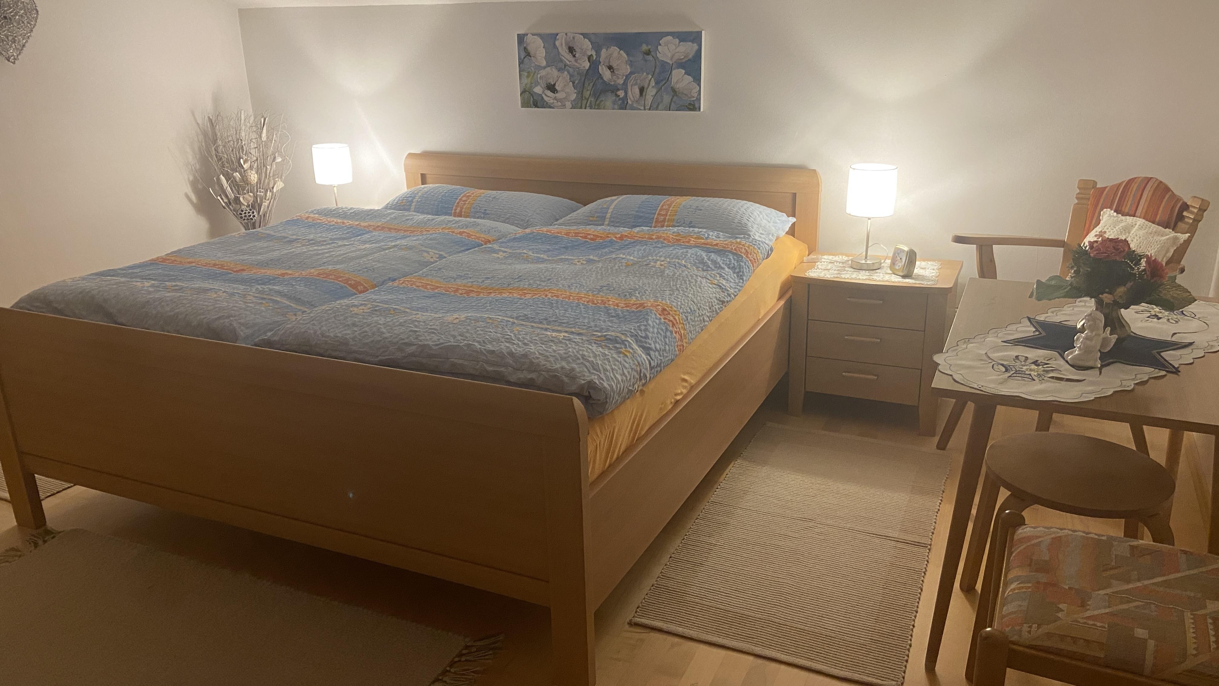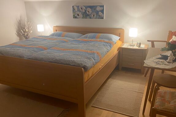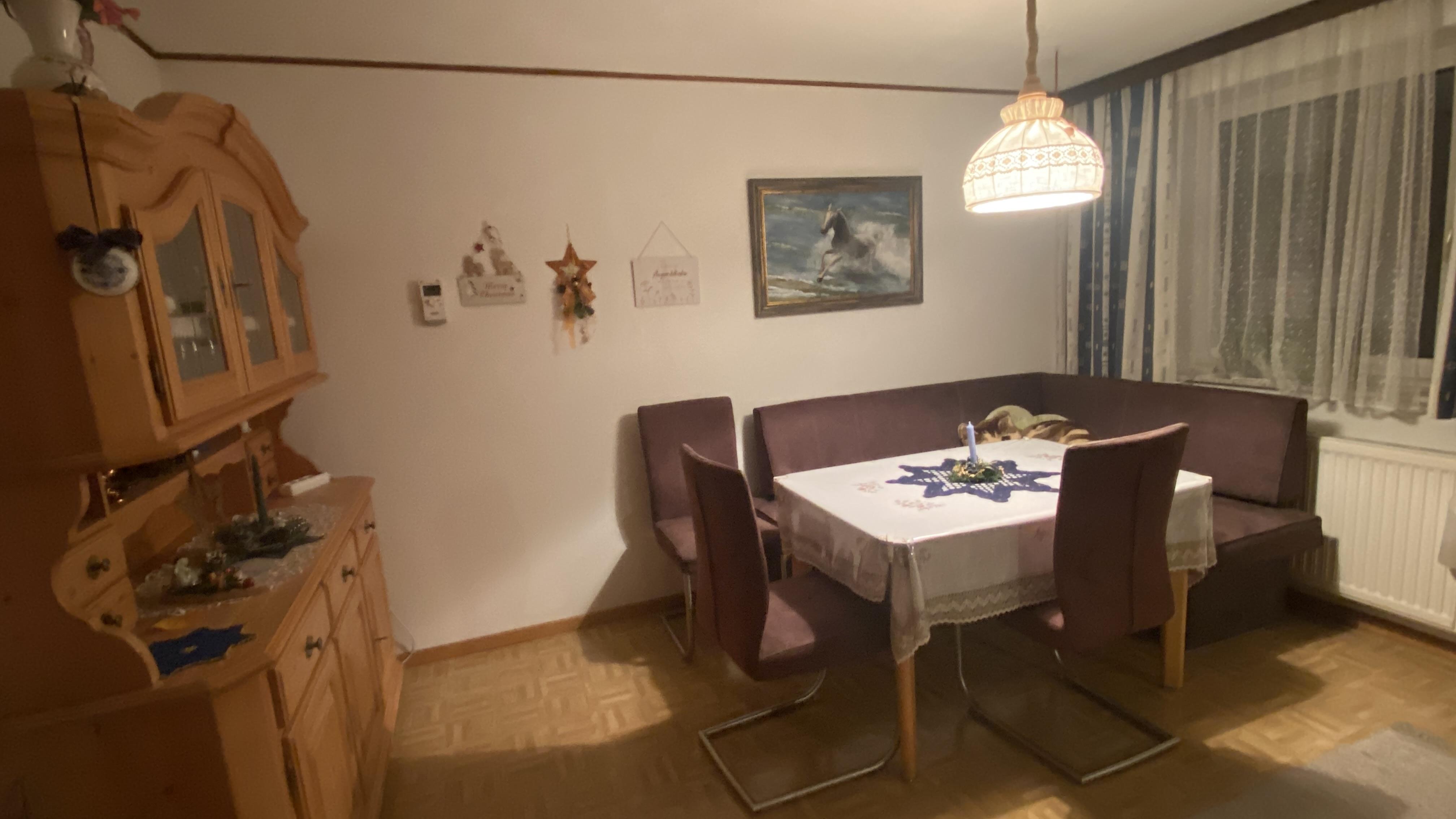 Unsere 80 m² Fereinwohnung ist teil eines Zweifamilienhauses und befindet sich im Dachgeschoss. Die Räume teilen sich auf in 3 Schlafzimmer, dem Wohnzimmer, Vorraum, Küche, einem Bad und einem WC. Im Wohnzimmer befindet sich ein großer Fernseher mit Sateliten TV. Der große Balkon bietet einen Wunderbaren Ausblick auf die Berge. Im Haus gibt es einen Leseraum mit Bücher und Spiele. Ein Crosstrainer wartet am Balkon auf Ihre Trainingseinheiten. Es handelt sich um eine Nichtraucherwohnung, darum bitten wir nur am Balkon zu rauchen.