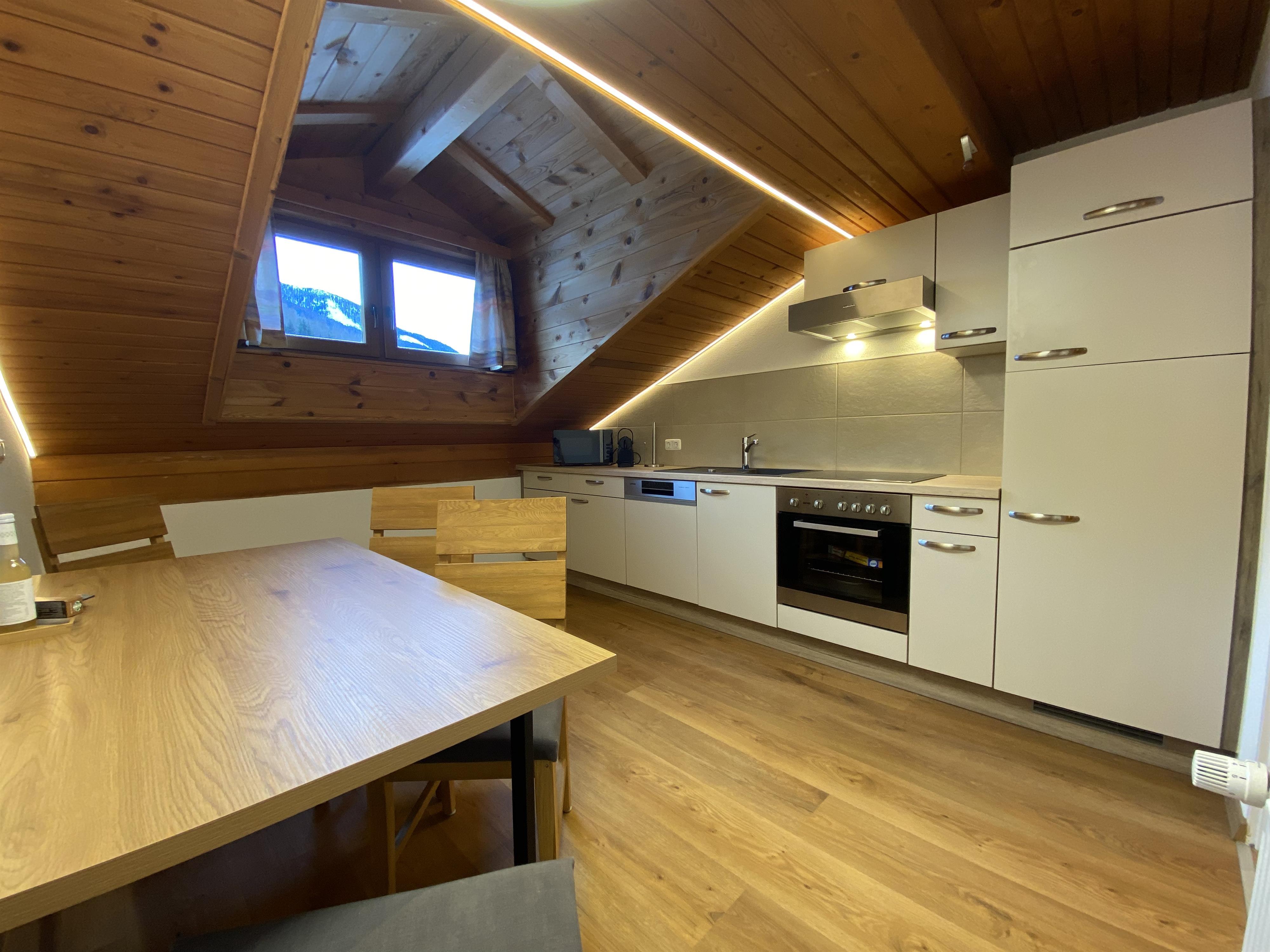 Das Appartement ist 70 m² groß und über eine Stiege erreichbar. Es bietet eine gemütliche Küche, zwei Schlafzimmer mit Doppelbett und TV sowie ein Badezimmer und WC. Vom Balkon genießen Sie einen schönen Blick über Sillian.