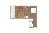 • Ruhiges Schlafzimmer mit separaten Wohnbereich und kleiner Küche mit Kühlschrank, Wasserkocher, Kaffeemaschine