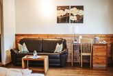 • Sitzecke mit Couch und Schreibtisch mit Sessel