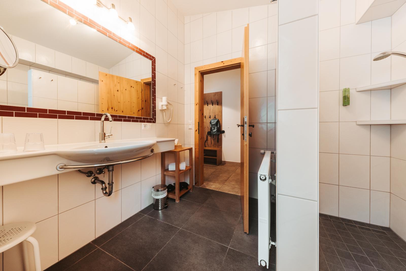 • Badezimmer mit Dusche, separatem WC, Fön