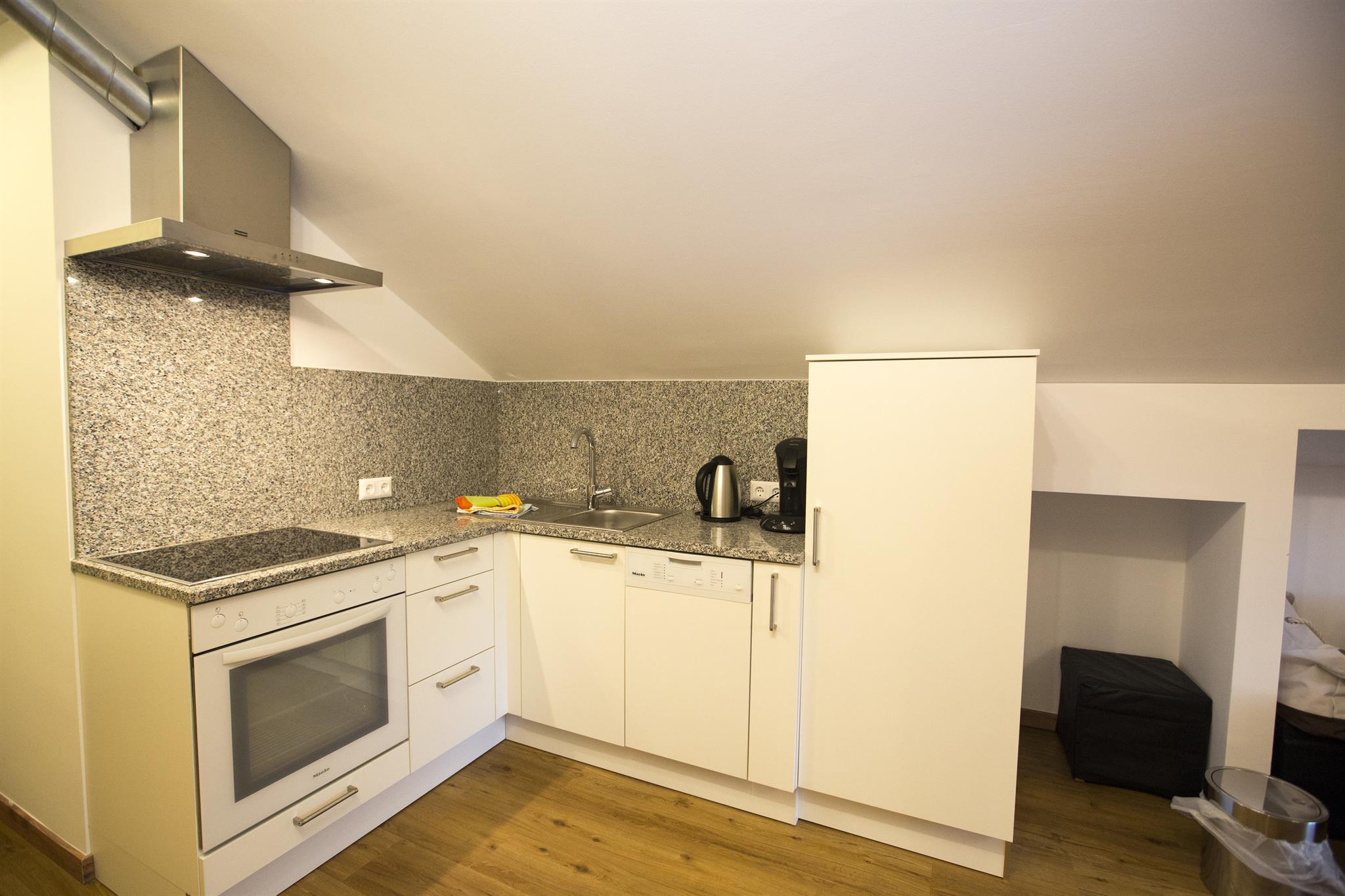 • Küche voll ausgestattet (2-Platten-Herd, Kühlschrank, Kaffeemaschine, Wasserkocher, Geschirrspüler, Töpfe, Geschirr)