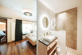 - Badezimmer mit Dusche, separatem WC, Fön