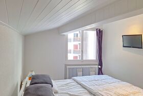 Violettes-Vacances B Apt. 429, 4-Zimmer-Wohnung 99 m2 auf 2 Stockwerken im 3. Stock, Nordwestlage. Vollständig renoviert im Jahre 2012, komfortabel und modern eingerichtet: Wohn-/Esszimmer mit Esstisch und Kabel-TV. Ausgang zum Balkon. Offene Küche (Backofen, Geschirrspüler, 4 Glaskeramikplatten, Toaster, Mikrowelle, elektrische Kaffeemaschine, Kapseln für die Kaffeemaschine (Nespresso) extra). Dusche, sep. WC. Ölheizung. Obergeschoss: (steile Treppe) 1 Zimmer mit 1 franz. Bett (160 cm, Länge 190 cm), Kabel-TV (Flachbildschirm). 1 Zimmer mit 2 x 2 Etagenbetten (90 cm, Länge 190 cm), Kabel-TV (Flachbildschirm). 1 Zimmer mit 1 x 1 Etagenbetten (90 cm, Länge 190 cm), Dusche/WC. Parkettboden. Kleiner Balkon 4 m2, Nordlage und Westlage. Sicht auf die Berge und die Skipiste. Zur Verfügung: Bügeleisen, Haartrockner. Internet (WLAN). Garage Nr. 17. Bitte beachten: Nichtraucher-Unterkunft.