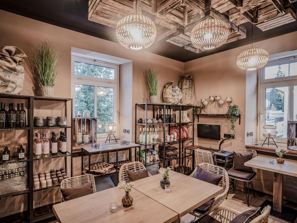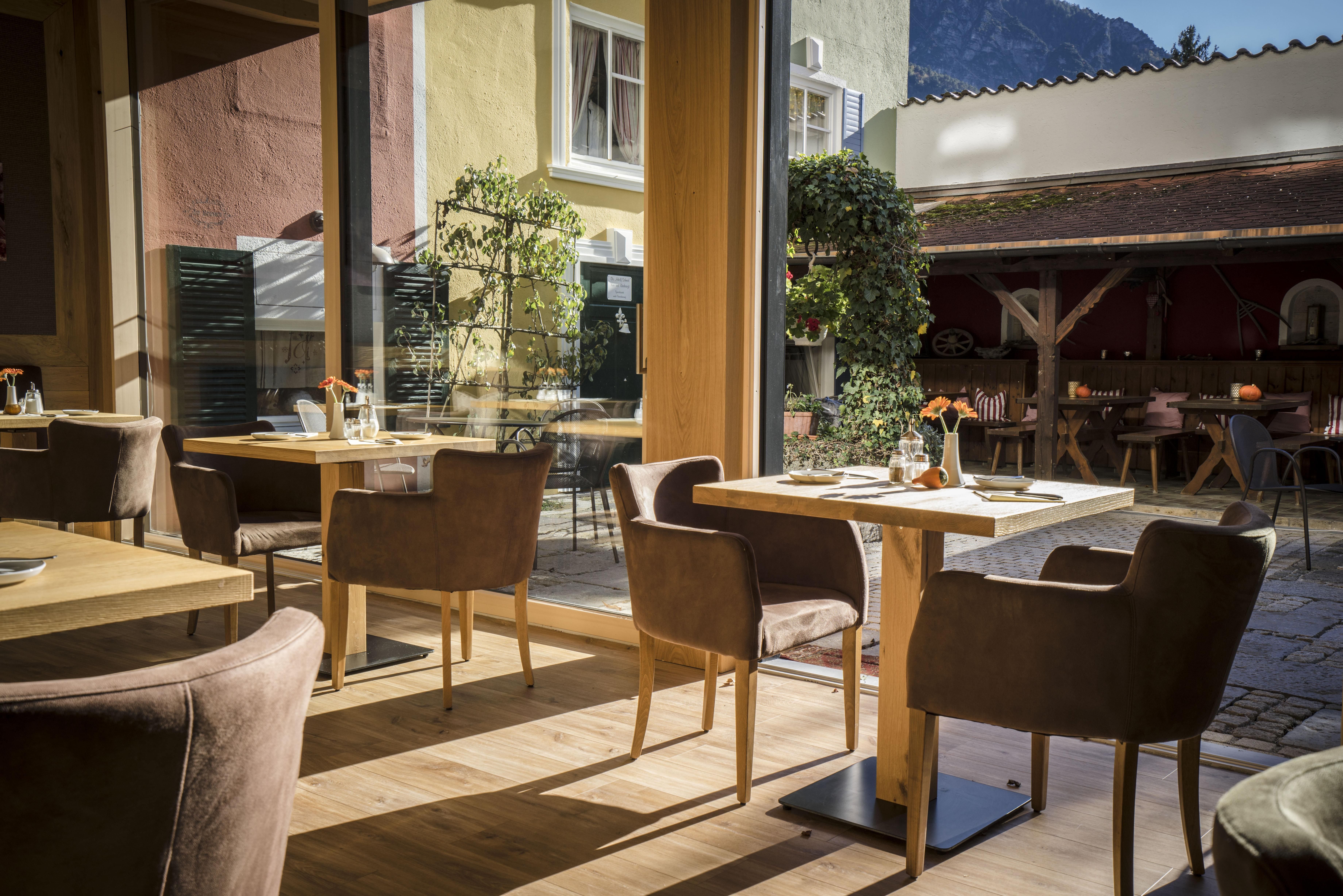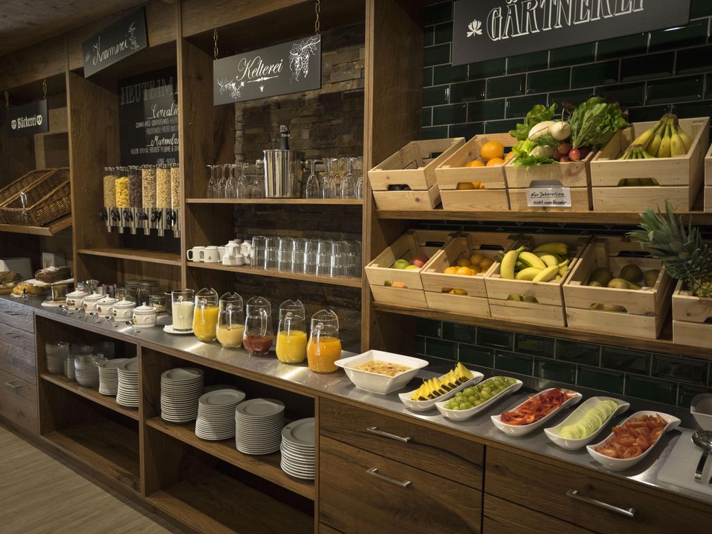 Neu gestalteter Frühstückraum mit Anschluss zum Garten und liebevolles komplett überarbeitetes Frühstücksbuffet mit frischen Waren aus der Region.