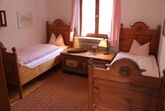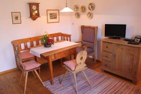 Die Einrichtung mit originalen Bauernmöbeln erzeugt eine stimmungsvolle Atmosphäre, die dazu verführt, schon etwas länger am Tisch sitzen zu bleiben und ein Glas mehr zu trinken.