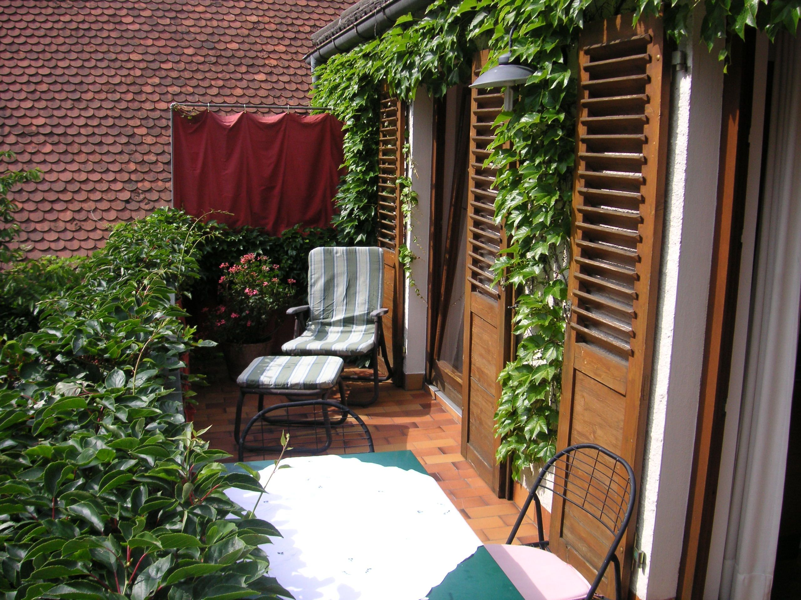 Die Ferienwohnung I liegt in einem separaten Nebengebäude im 1. Stock, das mit wildem Wein bewachsen ist.