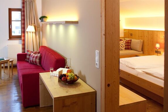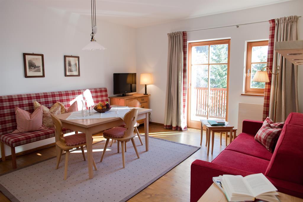 Die Ferienwohnung des Alpina ist ein herrliches Urlaubs-Daheim für 3 bis 6 Personen. Der gemütliche Wohnraum hat eine gut ausgestattete Kochnische, einen gemütlichen Essplatz der ausreichend Platz für bis zu 6 Personen bietet. Das Sofa eignet sich nicht nur zum Ausruhen mit einem herrlichen Blick auf die Lecher Berge, sondern ist auch als zusätzlicher Schlafplatz verwendbar. Bei Sonnenschein nützen die Gäste den Balkon auf der nach Süden ausgerichteten Wohnung mit Begeisterung. Das Doppelzimmer ist wie alle Zimmer im Alpina sehr geschmackvoll eingerichtet und liegt äußerst ruhig. Ein weiteres Zimmer bietet Platz für 1 oder 2 weitere Bewohner und verfügt über ein eigenes Bad mit Dusche und WC. Das große Badezimmmer der Ferienwohnung hat zwei Waschbecken, eine Badewanne mit Duschwand und ein seperates WC. Der Vorraum bietet Platz für Jacken, Schibekleidung und Schuhe.