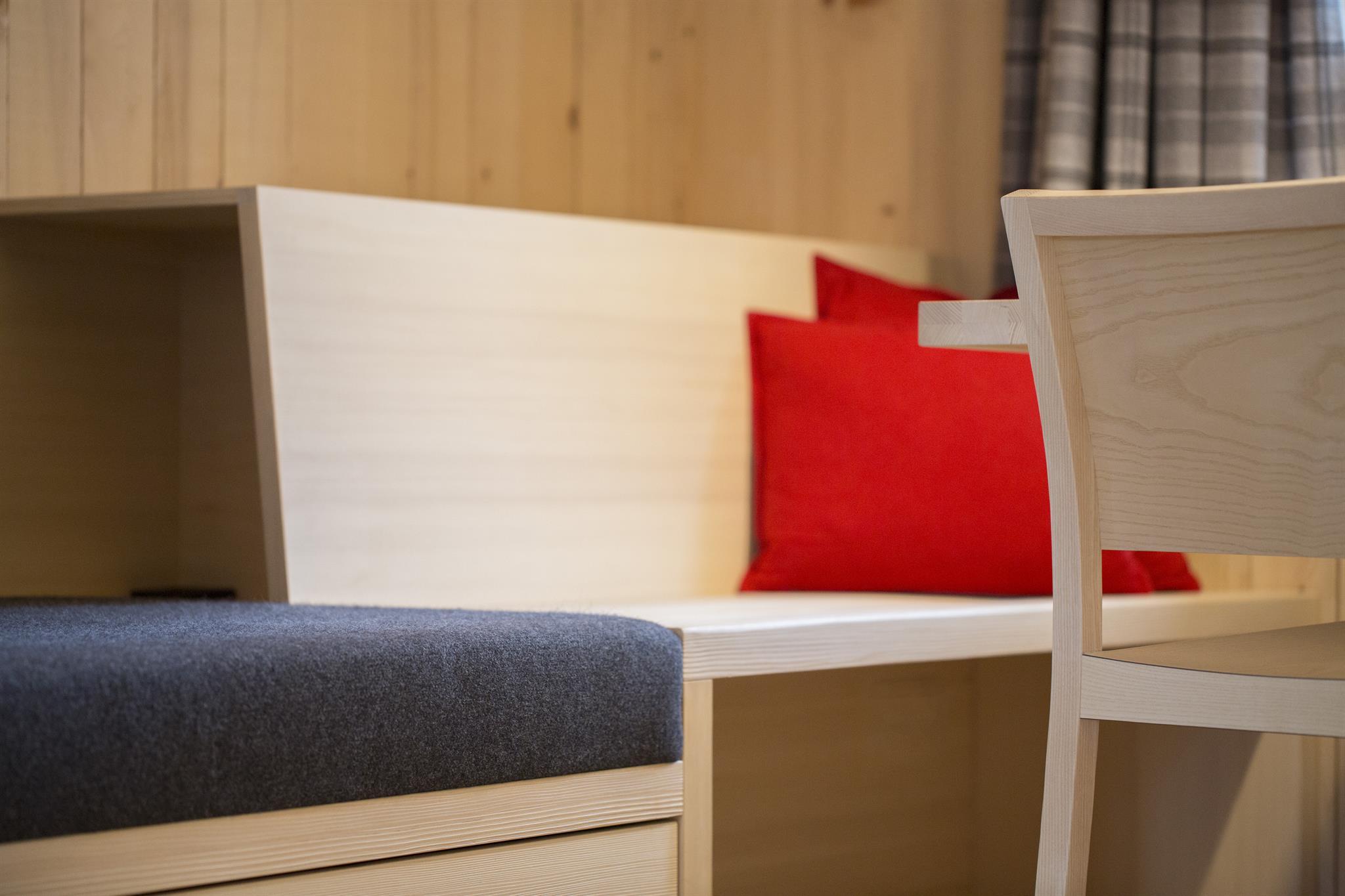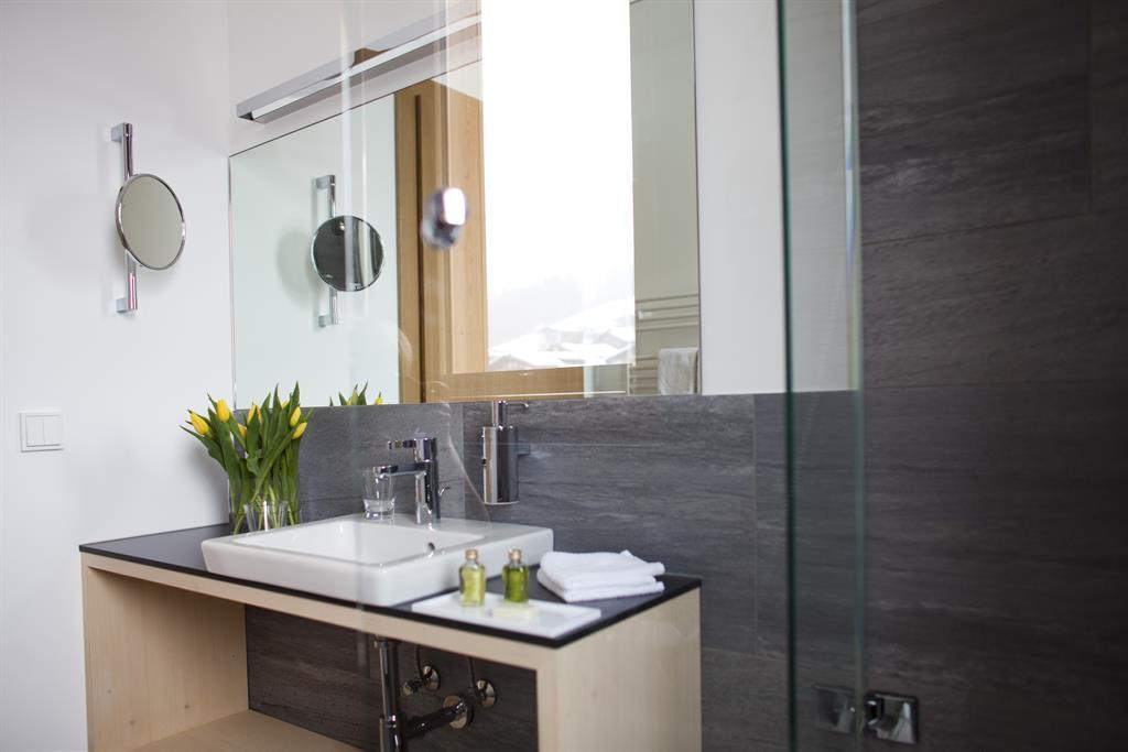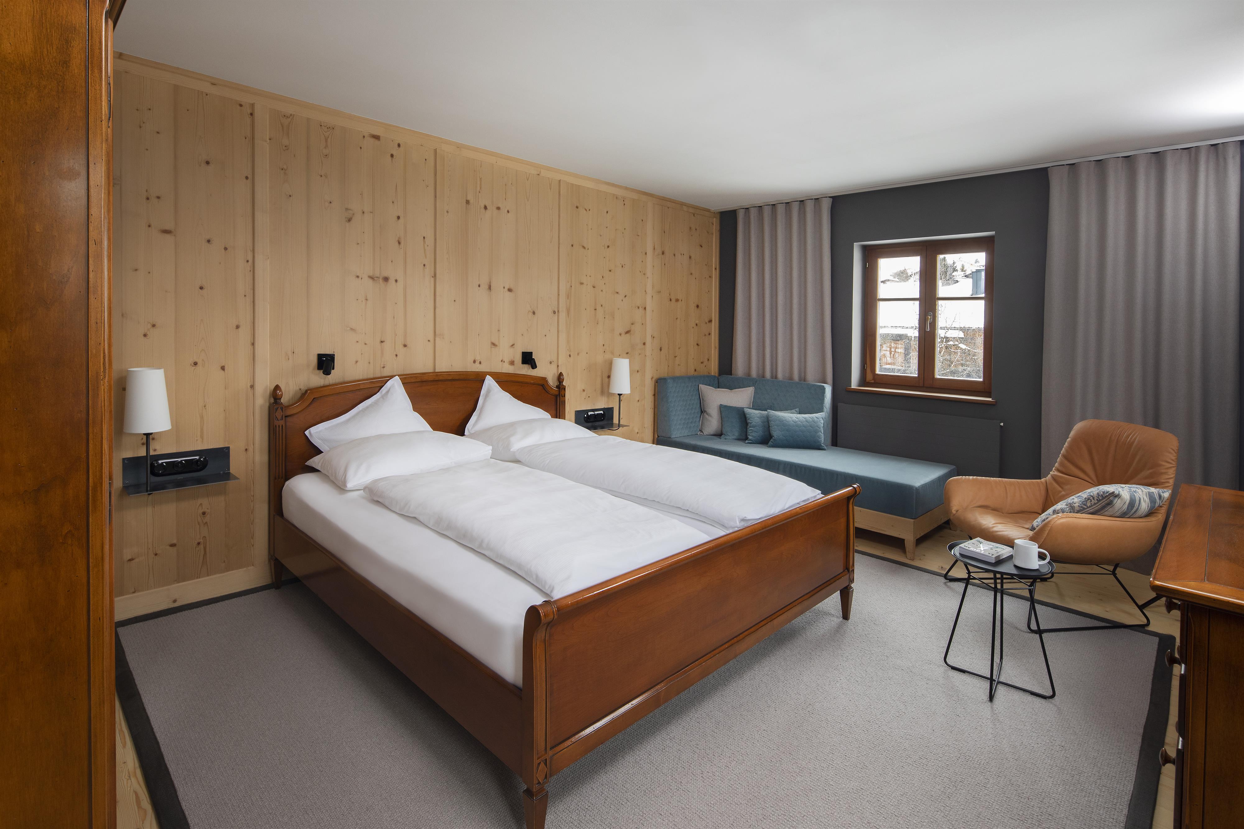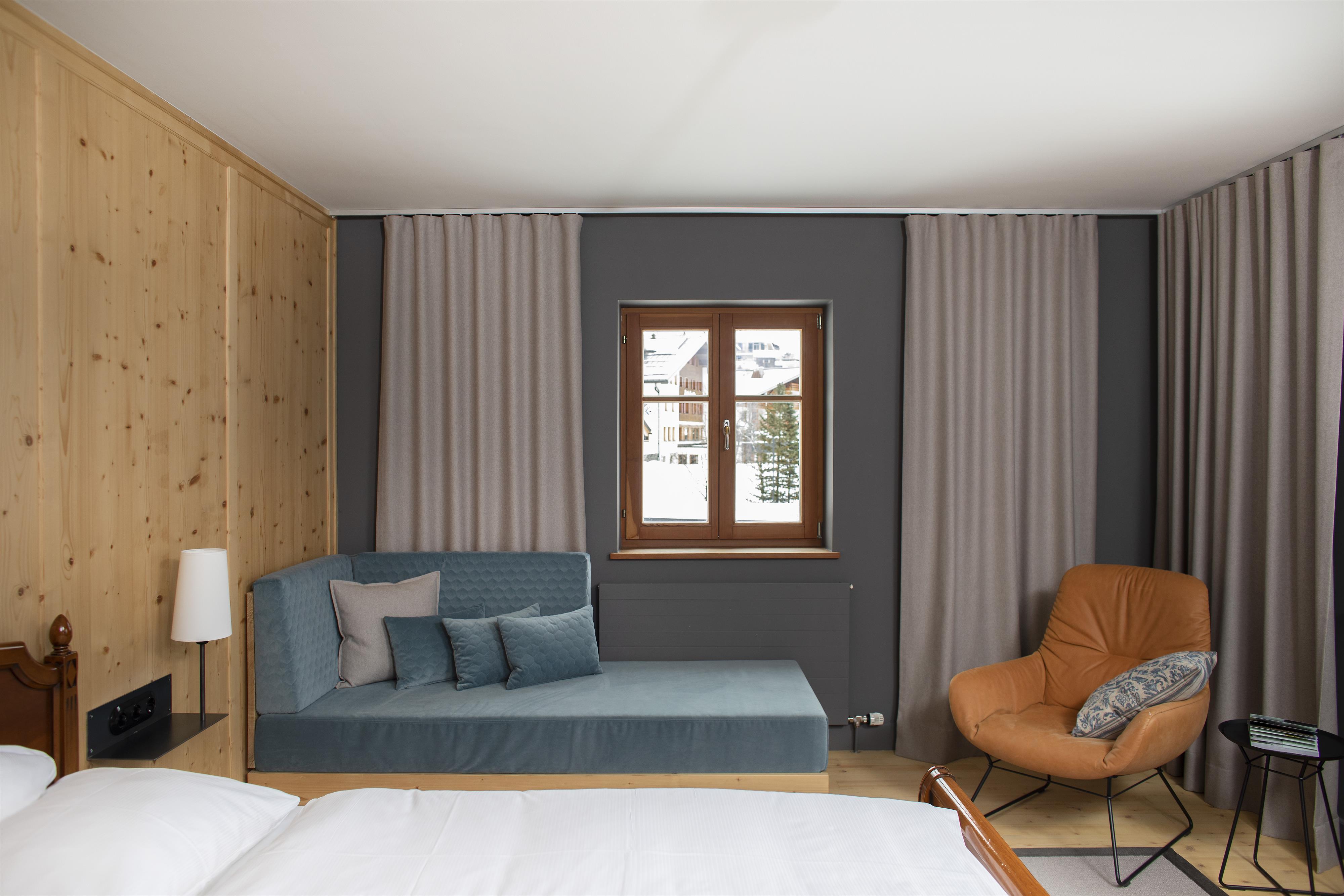 Das Alpina ist das Stammhaus der berühmten Strolz Familie. Im Jahre 2000 musste es einem schmucken Neubau in altem Stil weichen, und so wurde aus einem einfachen Bauernhaus ein feines, kleines, persönlich geführtes Vier-Sterne-Frühstückshotel. Die Gastgeber Andrea und Bruno Strolz setzen dabei auf österreichische Gastlichkeit in bestem Sinne, eine individuelle, herzliche Ansprache in familiärer Atmosphäre. Großer Beliebtheit erfreut sich die von den Gästen selber als „Gästewohnzimmer“ bezeichnete Halle mit dem offenen Kamin, in der am Nachmittag die Teestunde zelebriert und genossen wird. Etwas abseits der Hauptstraße und dennoch nur fünf Gehminuten vom Ortskern und den Skiliften entfernt, liegt das Haus am Ende der berühmten Madlochabfahrt. Die Loipe und der Winterwanderweg beginnen unmittelbar vor der Haustüre. Das Haus Alpina präsentiert sich heute seinen Gästen mit zeitgemäßem Komfort, gleichzeitig aber mit einem traditionellen, behutsam renovierten Interieur und vielen schönen Details. Alle Zimmer und Suiten im Haus Alpina sind liebevoll und individuell eingerichtet, gefallen mit warmen Farben und frischem Blumenschmuck sowie ausgesuchten Möbeln und Materialien. Großer Beliebtheit erfreut sich bei den Gästen auch die großzügige Ferienwohnung, ideal für Familien. Entspannung pur nach einem ausgiebigen Skitag oder einem Tag an der frischen Bergluft bietet nicht nur die Sonnenterrasse oder der Balkon mit Blick auf die wunderbare Bergwelt, sondern auch der Alpina-Wohlfühlbereich mit Sauna, Dampfbad, Infrarot und Ruhebereich.